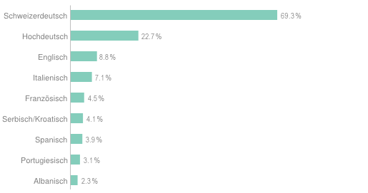 Sieben von zehn Einwohnerinnen und Einwohnern der Stadt Zürich sprechen zu Hause Schweizerdeutsch. An zweiter Stelle steht Hochdeutsch, gefolgt von Englisch. Ein beträchtlicher Teil der Bevölkerung spricht zu Hause mehr als eine Sprache.
