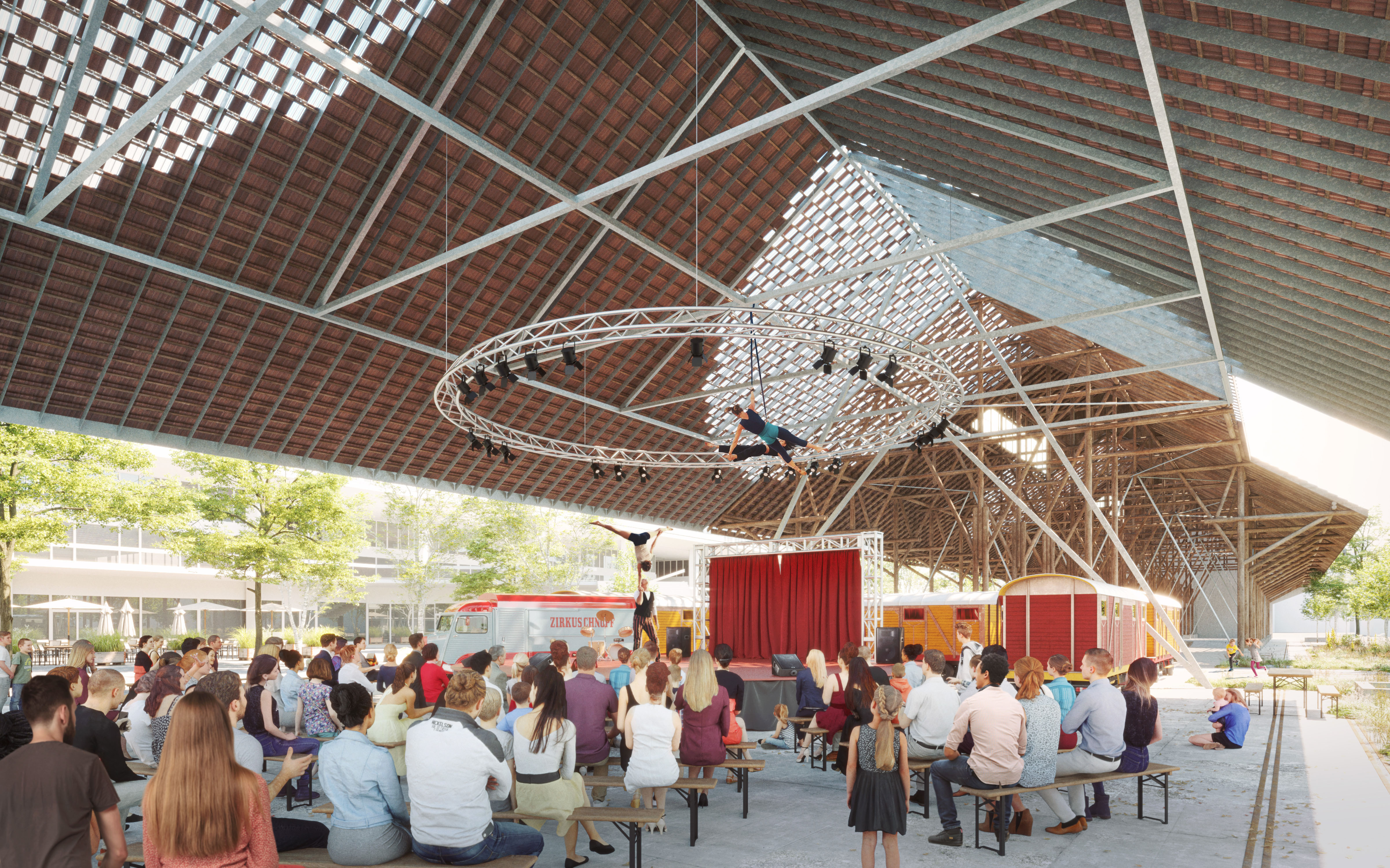 Der knapp 12 000 Quadratmeter grosse Quartierpark bildet die künftige grüne Mitte des Koch-Areals. Er ist wichtiger Teil der Freiraumversorgung für die Bevölkerung in den Quartieren Albisrieden und Altstetten. Das Projekt sieht eine grosszügige offene Koch-Wiese mit Baumbestand, einen naturnah gestalteten, wildnishaften Garten («jardin sauvage») und die einstige Kohlenlagerhalle als überdachten Freiraum vor. Die ehemals als Kohlenlager genutzte Halle ist samt der dazugehörigen Gleisinfrastruktur ein wertvoller und seltener Bauzeuge der städtebaulichen Entwicklungsgeschichte von Albisrieden und Altstetten. Dem heute im Rahmen einer Zwischennutzung auf dem Koch-Areal beheimateten Zirkus Chnopf soll künftig die zeitweise Nutzung des nördlichen Hallenteils als Probebühne und für Veranstaltungen ermöglicht werden. Die Halle soll wie ein öffentlicher Platz funktionieren und eignet sich sowohl für die spontane Spiel- und Erholungsnutzung durch die Quartierbevölkerung als auch für Veranstaltungen. «Der Park wird das Quartier beleben und ist ein wichtiger Teil der Freiraumversorgung. Mit den verschiedenen Elementen wie Halle, Grünflächen und Bäumen ist eine vielfältige und spannende Nutzung garantiert», freut sich Stadtrat Richard Wolff, Vorsteher des Tiefbau- und Entsorgungsdepartements.