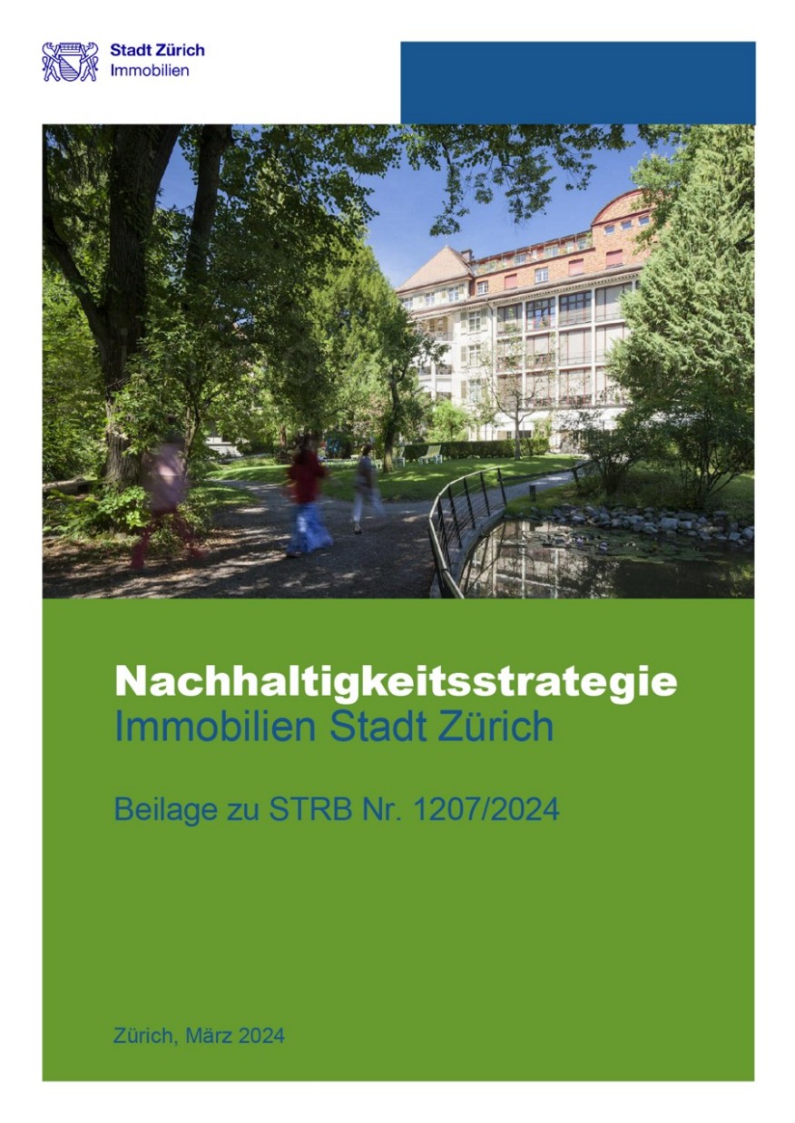 Die Nachhaltigkeitsstrategie konkretisiert die Ziele und Massnahmen für das nachhaltige Management des Portfolios von Immobilien Stadt Zürich. Sie umfasst Aspekte wie Klimaschutz, nachhaltige Beschaffung, Kreislaufwirtschaft, Biodiversität, Innenraumluftqualität und thermischen Komfort. Die Strategie orientiert sich an den städtischen Nachhaltigkeitszielen, darunter das Klimaziel Netto-Null bis 2035. Das Dokument hat einen Betrachtungshorizont bis 2035 und gilt für fünf Jahre, vorbehaltlich Anpassungen aufgrund neuer rechtlicher Vorgaben.