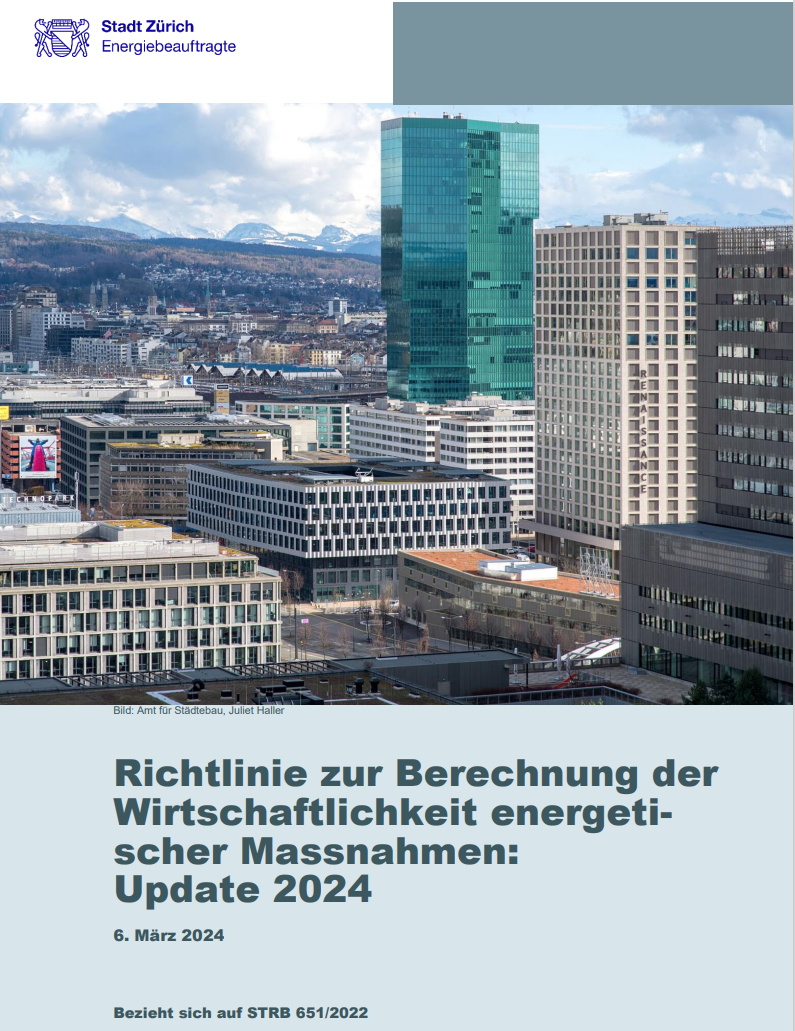 Die Stadt gibt jedes Jahr eine neue Richtlinie zur Berechnung der Wirtschaftlichkeit energetischer Massnahmen im Gebäudebereich heraus. Die Richtlinien der Jahre 2023 und 2024 enthalten die Ausgangspreise der relevanten Energieträger sowie eine Preisannahme für 2050.