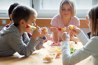 Kinder essen regelmässig Znüni und Zvieri. In der Rezeptbroschüre finden sich abwechslungsreiche, schmackhafte und gesunde Ideen für den Zvieri in der Betreuung oder den Pausenkiosk. Die Rezepte eignen sich sehr gut, um sie zusammen mit den Kindern zuzubereiten.