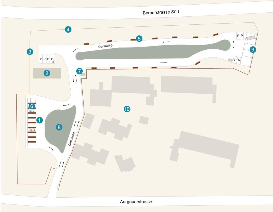 Die Zufahrt zum Strichplatz Depotweg erfolgt über die Aargauerstrasse: