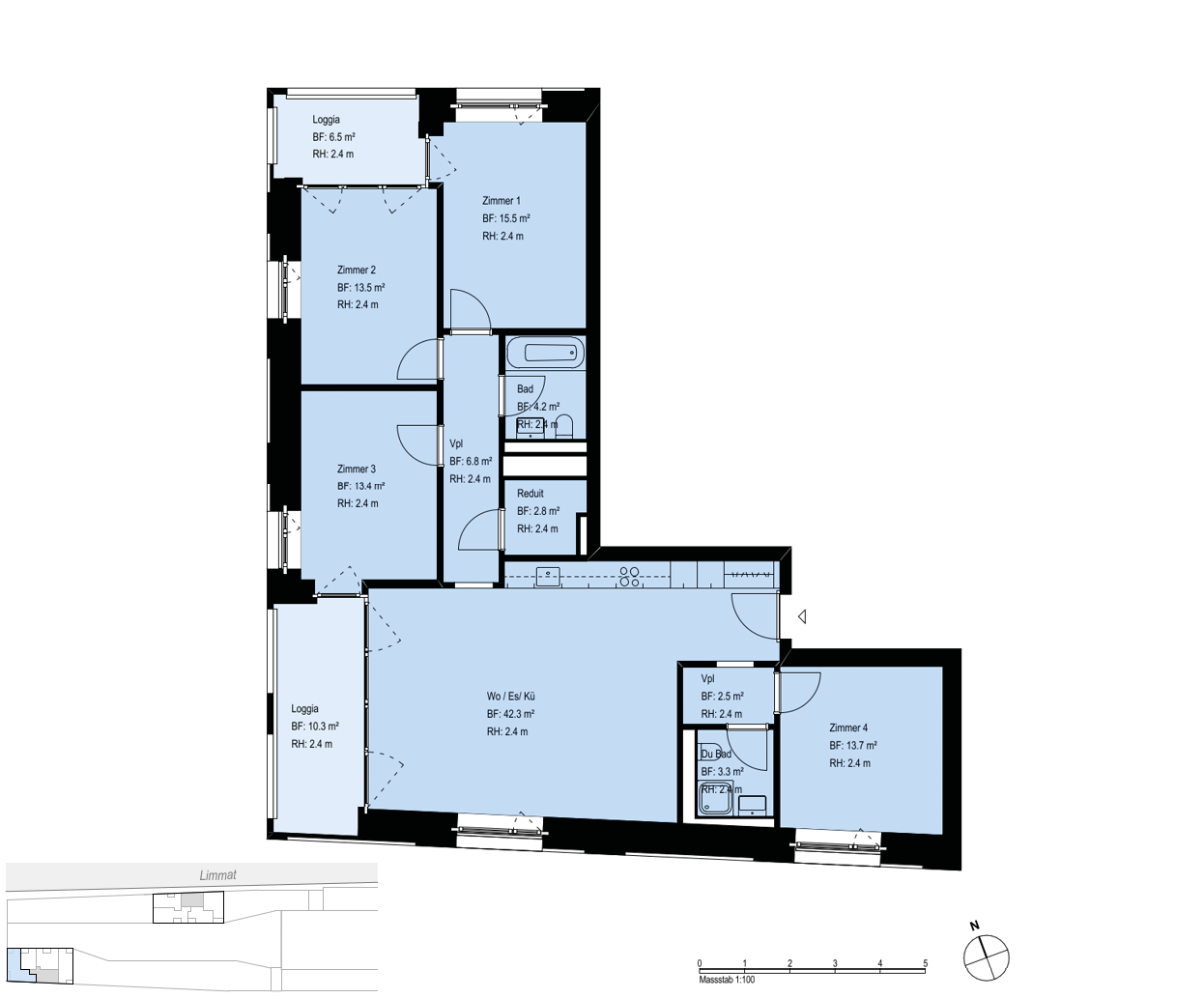 Die Pläne zeigen beispielhafte Wohnungstypen. Sie können bei der Bewerbung Ihre gewünschte Wohnungsgrösse angeben. Diese muss den Mietbedingungen entsprechen. Adresse und Stockwerk der Wohnung können Sie dagegen nicht wählen. Wichtig: Ein Anspruch auf Berücksichtigung Ihres Wunsches besteht nicht. Liegenschaften Stadt Zürich teilt die Wohnungen gemäss Vermietungsverordnung und Verfügbarkeit zu.
