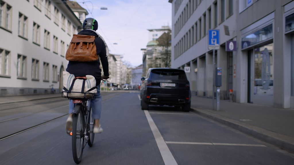 Wer in einem parkierten Auto eine Türe öffnet, ohne sich zu vergewissern, dass sich keine Person auf einem Velo nähert, nimmt einen Unfall mit potenziell schweren Verletzungen oder Todesfolge in Kauf. Beim sogenannten «Dooring» stehen in erster Linie die Autofahrenden in der Verantwortung. Wenn sie den sogenannten «Holländer-Griff» anwenden, verursachen sie weniger Unfälle. Indem Velofahrende genügend Abstand zu parkierten Autos halten und sich selbstbewusst den dafür nötigen Strassenraum nehmen, können sie aktiv zu ihrer Sicherheit beitragen.
