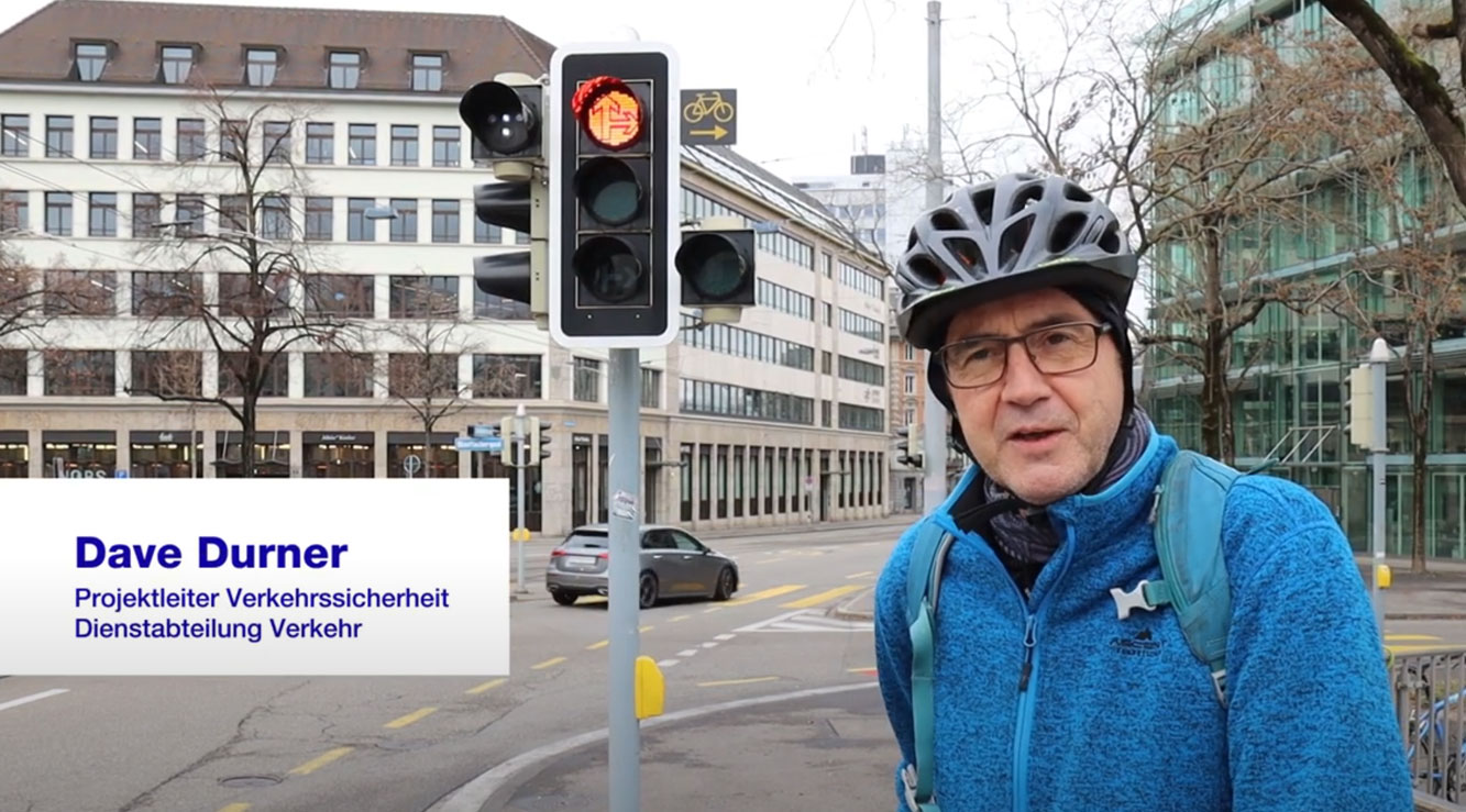 Dave Durner, Projektleiter Verkehrssicherheit bei der Dienstabteilung Verkehr, erklärt in einem kurzen Video, wie die einzelnen Veloampeln funktionieren.