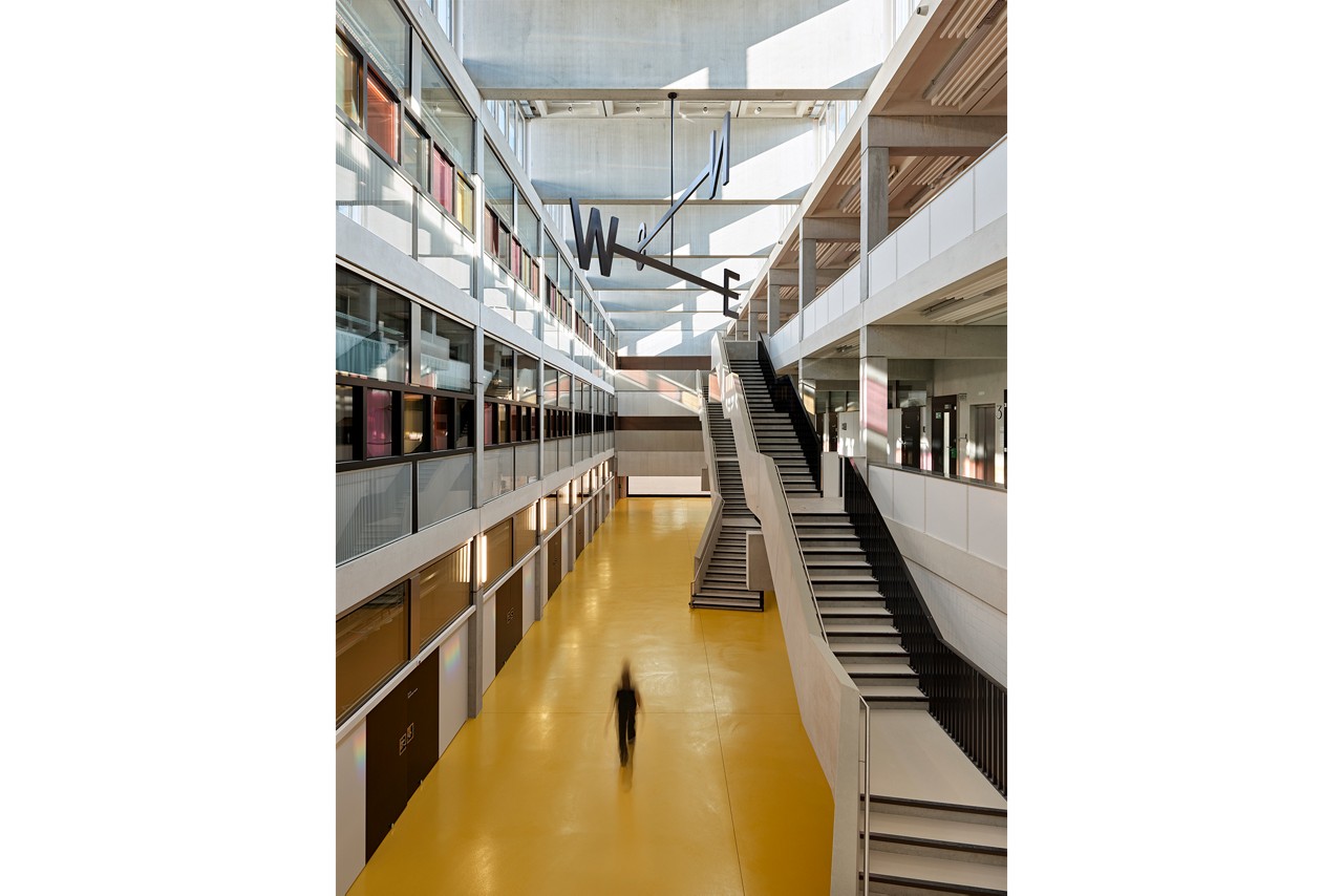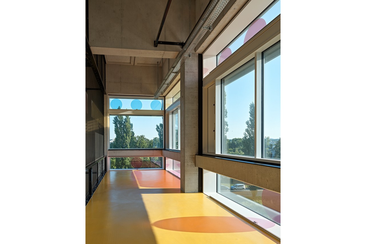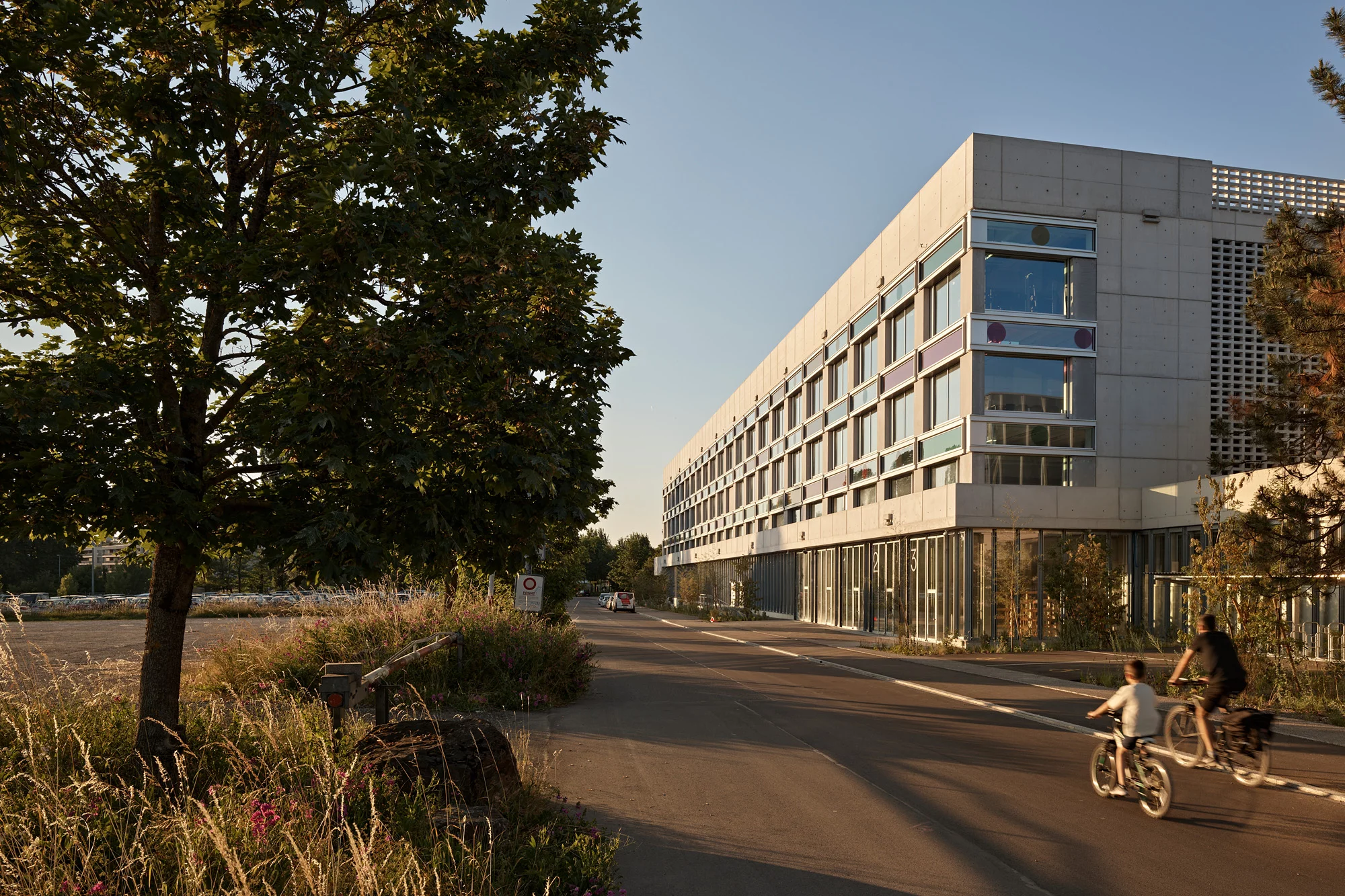 Das Projekt verbindet gekonnt Alt und Neu. Das funktionale neue Gebäude ist zudem nachhaltig in Bau und Betrieb. Der Neubau wurde in modularer Bauweise mit hohem Vorfabrikationsgrad erstellt. Tragwerk und Haustechnik bestimmen den Ausdruck der Räume. Die Baustruktur kommt ohne Verkleidung aus und kann als Qualitätsrohbau bezeichnet werden. Die Haustechnikinstallationen sind offen geführt und bei Unterhaltsarbeiten leicht zugänglich; sie können bei Bedarf entsprechend ergänzt werden. Bei der Materialwahl wurde Wert auf Robustheit, Einfachheit und Langlebigkeit gelegt, um einen kostengünstigen Unterhalt zu gewährleisten.