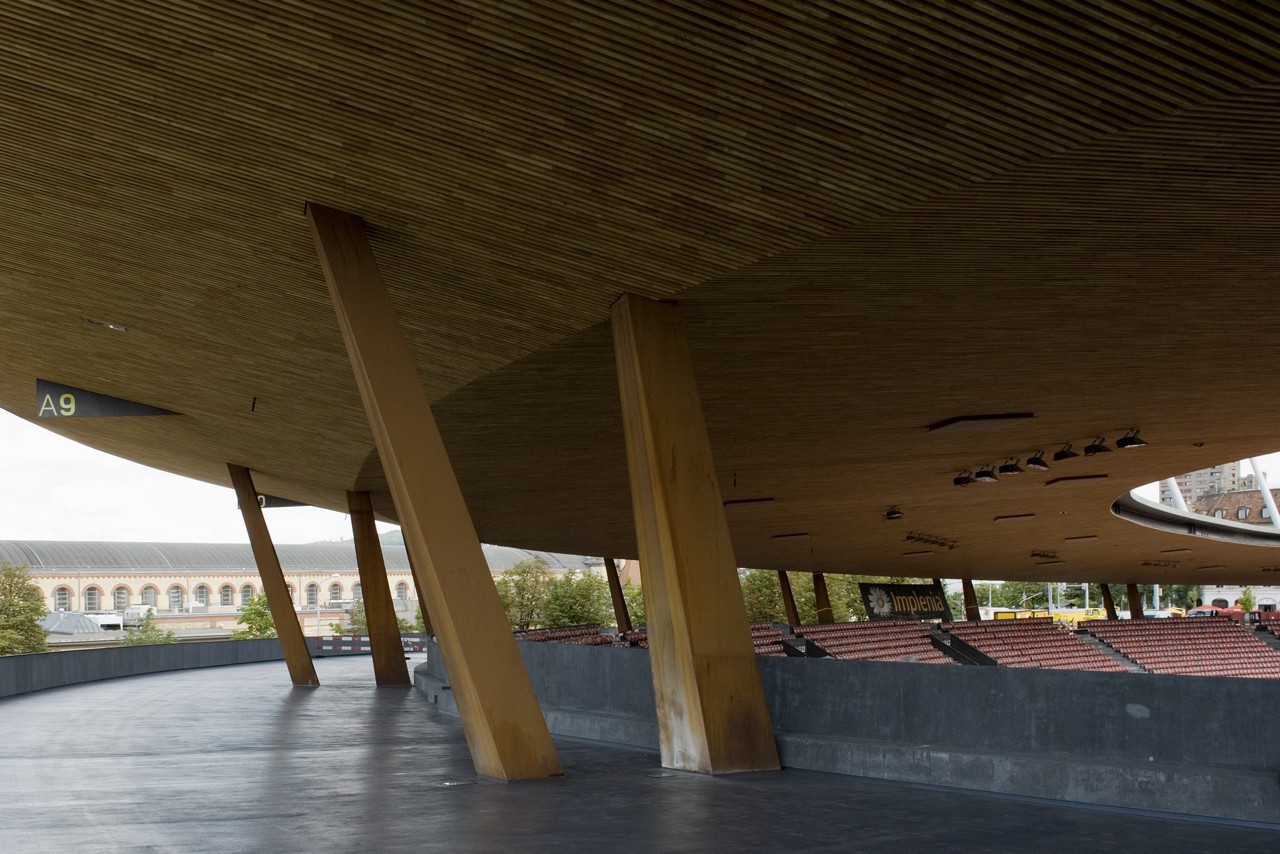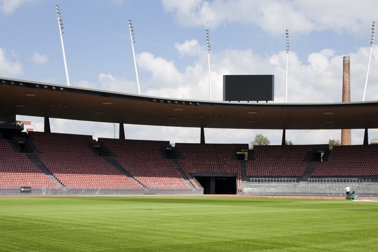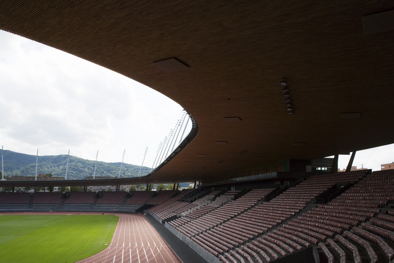 Das 2007 eröffnete Stadion Letzigrund in Zürich-Altstetten hat gleich vier Aufgaben zu erfüllen: Trainings- und Austragungsort für den Breitensport, Schauplatz von Sportevents wie «Weltklasse Zürich», Konzertbühne und – verknüpft mit dem Schicksal des Projekts Hardturm – nationale und internationale Fussballspiele. Auf dieses komplexes Raumprogramm reagierten die Architekt*innen mit Einfachheit. Schlicht und nur sieben Meter hoch erhebt sich das radiale Bauwerk knapp über Strassenniveau. Im Innern hat das Stadion eine überraschende Tiefe. Durch seine extrem offene Struktur geniessen Athlet*innen und Fussballer*innen sowie das Publikum ungeahnte Ausblicke auf die Stadt.