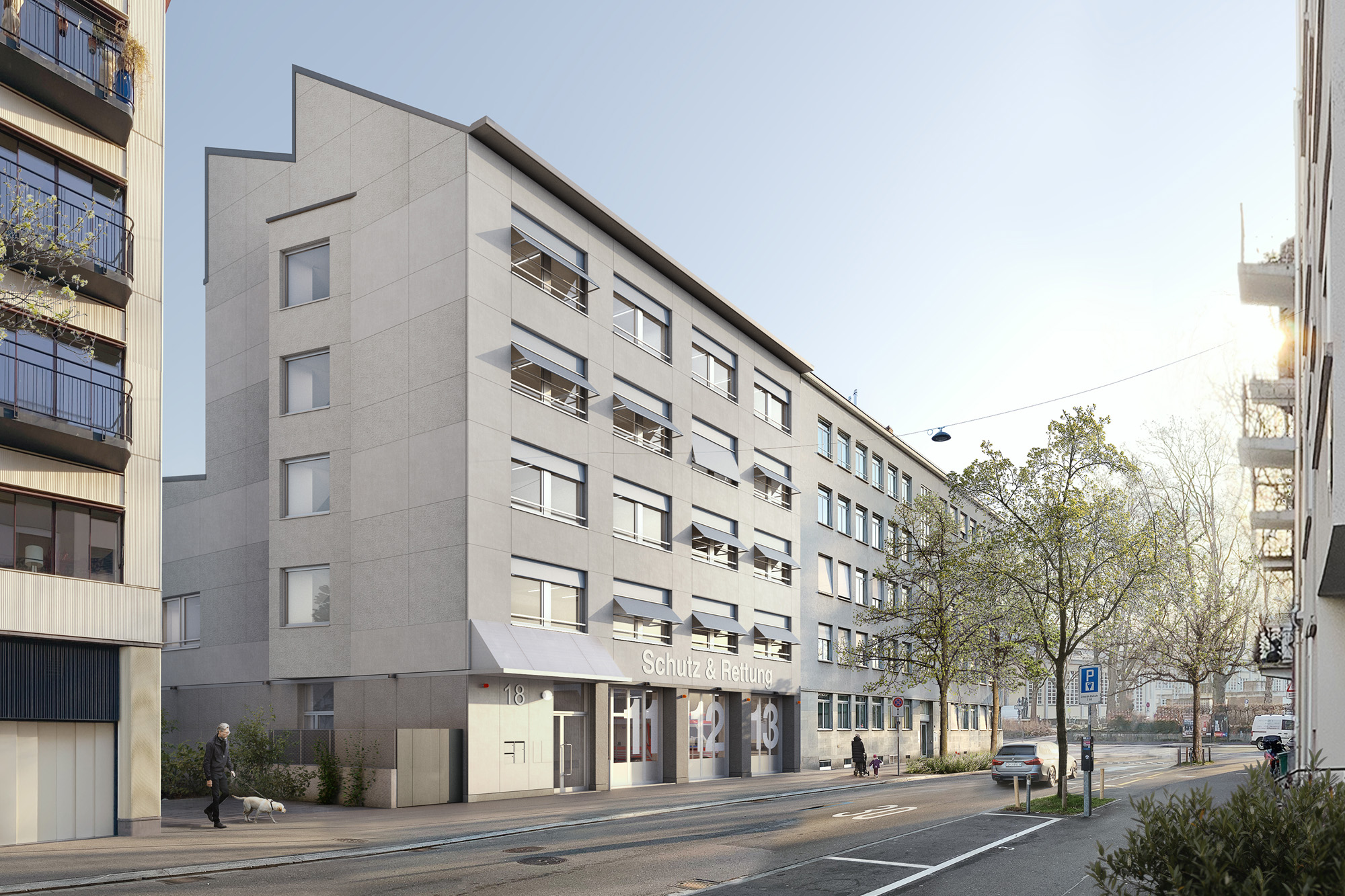 Bei einem Notfall zählt jede Minute. Feuerwehr und Rettungsdienst sollen ihre Einsatzorte innert zehn Minuten nach der Alarmierung erreichen. Mit den bestehenden Wachen kann Schutz & Rettung Zürich diese Zielvorgabe nicht immer einhalten. Deshalb plant die Stadt neue Standorte für Feuerwehr und Sanität. Die 1937 von Stadtbaumeister Hermann Herter erstellte und heute im kommunalen Inventar der kunst- und kulturhistorischen Schutzobjekte aufgeführte Brandwache dient heute als Hauptsitz von Schutz & Rettung Zürich. Sie ist auch 80 Jahre nach ihrer Inbetriebnahme mit ihrer direkten Anbindung an die Autobahn A3 ideal gelegen, um insbesondere die wachsende Bevölkerung im Kreis 2 rasch zu erreichen. Die engen Platzverhältnisse in der Fahrzeughalle, im Innenhof und im Garderobenbereich erschweren allerdings heute effiziente Einsatz- und Logistikprozesse. Künftig sollen neben der Berufsfeuerwehr neu auch die Sanität (mit dem Rettungsdienst für Notfalleinsätze und dem Verlegungsdienst für den Transport medizinisch stabiler Patient*innen) sowie die Milizfeuerwehr in den Betrieb der Wache Süd eingebunden werden. Eine Erweiterung, Umbauten und die Instandhaltung des Bestandesbaus zur betrieblichen Optimierung sind daher notwendig.