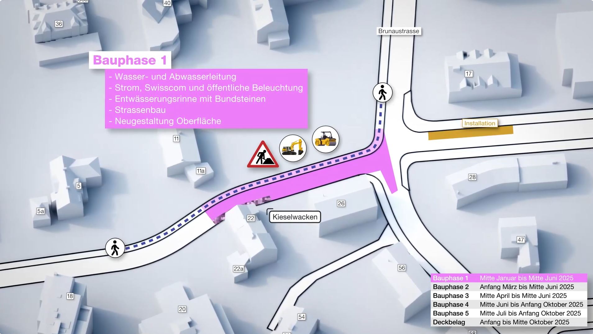 - Bauarbeiten: Werkleitungen, Anpassung der Oberfläche