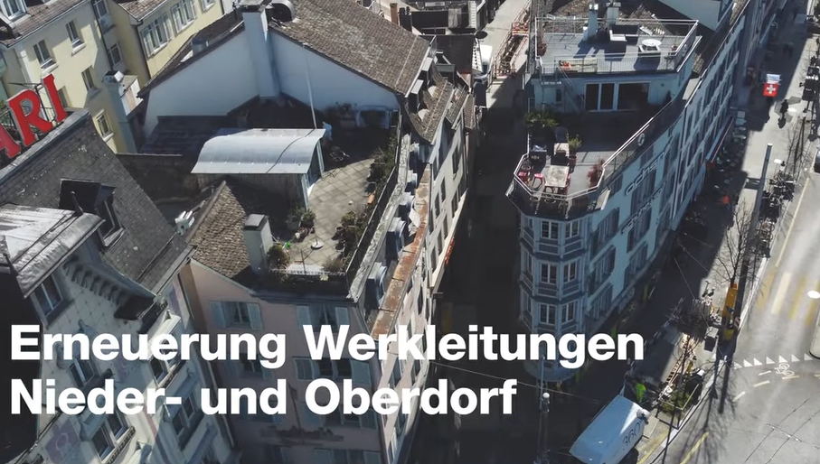 Im Nieder- und Oberdorf prüft die Stadt zurzeit die Machbarkeit eines thermischen Netzes. Dessen Realisierung ist aufgrund der örtlichen Bedingungen sehr anspruchsvoll. Vor einem Entscheid müssen darum noch die Resultate einer vertieften Machbarkeitsstudie abgewartet werden. Sie liegen voraussichtlich bis 2027 vor. Die zurzeit laufende Sanierung der bestehenden Werkleitungen muss aus Sicherheitsgründen hingegen bereits jetzt begonnen werden.