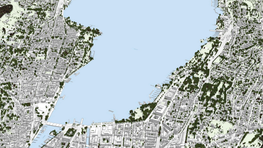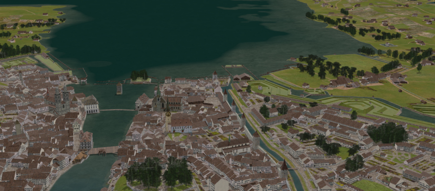 Der Bildvergleich lässt das Ausmass der Landgewinnung erkennen. Die Bilder wurden mit dem digitalen 3D-Stadtmodell der Stadt Zürich erstellt.