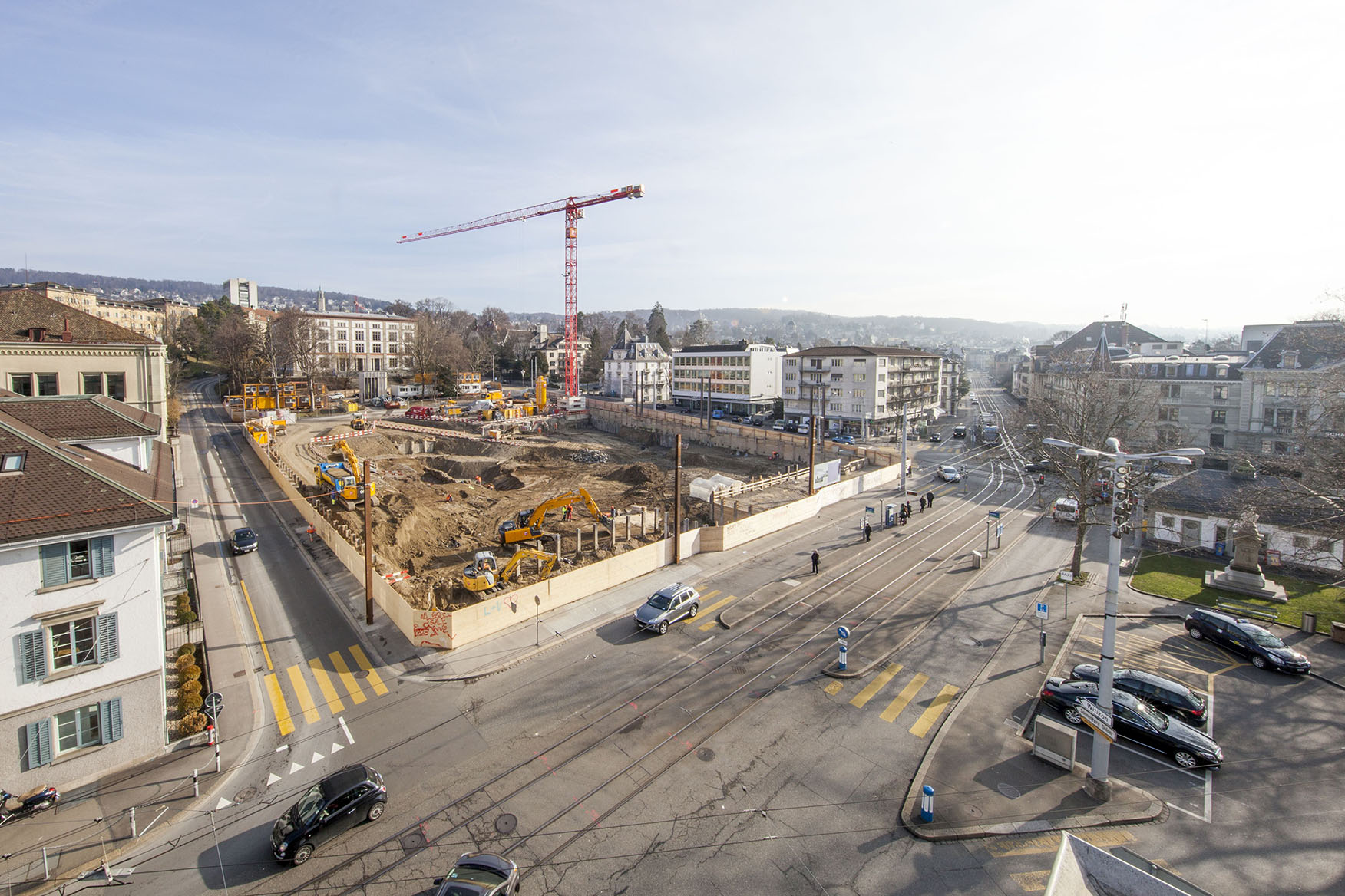 Nach dem «Ja» der Stadtzürcher Stimmbevölkerung zur Kunsthaus-Erweiterung (2012) begannen im November 2015 die Bauarbeiten und mit ihnen die archäologische Untersuchung. Die bis zu 23-köpfige Equipe der Stadtarchäologie war für fast ein Jahr vor Ort. Ausgrabung und Baubetrieb mussten eng abgestimmt werden. In der nahezu 70 auf 70 Meter messenden Baugrube zeigte sich, dass das Gelände einerseits durch neuzeitliche Aufschüttungen und andererseits durch die Aktivitäten des Wolfbachs stark geprägt worden war. Dadurch reichte die Untersuchung in eine Tiefe von bis zu 17 Metern und zeitlich vom 19. Jahrhundert bis in die Eiszeit.