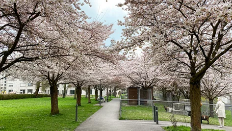 Im Gesundheitszentrum für das Alter Mattenhof im grünen Schwamendingen blüht jedes Jahr ebenfalls eine wunderschöne Kirschblütenpracht. Warum nicht einen Spaziergang durch das Blütenmeer mit einem Besuch im Restaurant «Pallio» verbinden – für einen feinen Zmittag oder für einen Kaffee und ein Stück Kuchen?