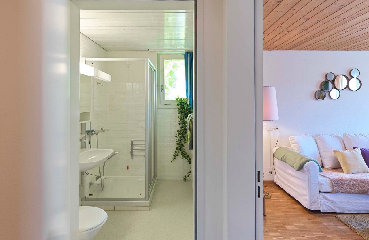 Alle Appartements verfügen über eine Nasszelle mit WC und Lavabo sowie einen eigenen Balkon. Die 2-Zimmer-Appartements verfügen zusätzlich über eine private Dusche.
