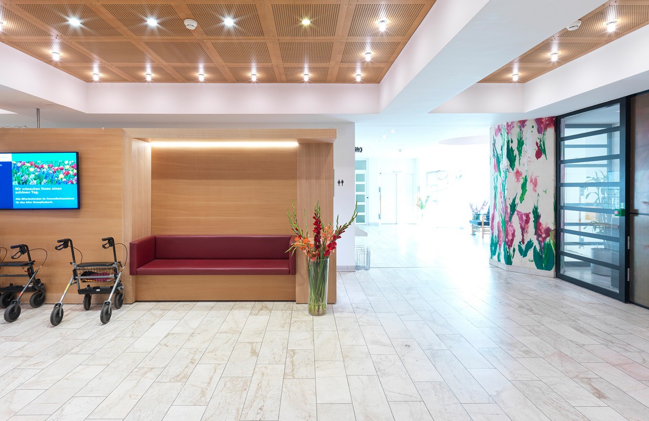 Übrigens: Das Gesundheitszentrum für das Alter Stampfenbach können Sie auch bequem von zu Hause aus virtuell besichtigen. Virtuellen Rundgang starten.