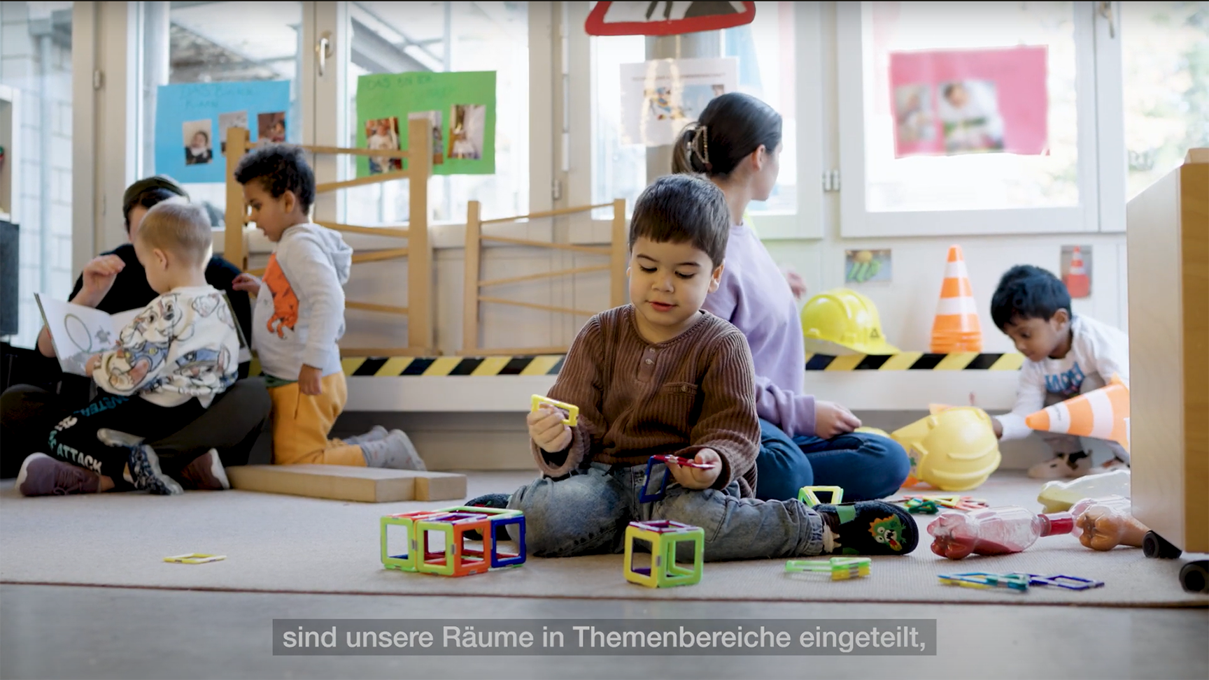 Unsere hellen und grosszügigen Räumlichkeiten befinden sich im Erdgeschoss und sind in verschieden Bildungsbereiche eingeteilt. In den verschiedenen Bereichen werden nach Alter und Entwicklungsstand der Kinder, verschieden Materialien auf Kinderhöhe angeboten. Die Kinder erhalten in unseren Räumen die Möglichkeit, sich in Fein- und Grobmotorik zu üben, zu bauen und konstruieren, durch Bewegungsbaustellen ihrem Bewegungsdrang nachzugehen, gemeinsam zu musizieren, sich kreativ auszuleben, sozialen Kontakte im Rollenspiel zu üben, sich auszuruhen und zu entspannen sowie Erfahrungen mit allen Sinnen zu sammeln.
