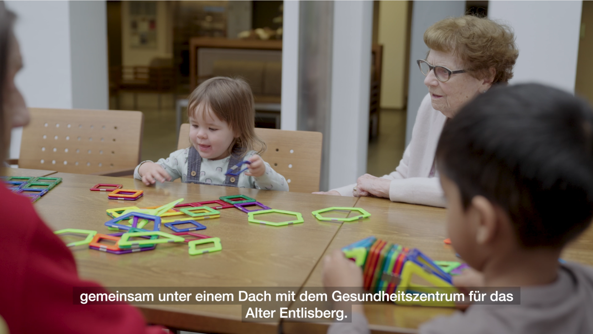 - Die Gruppe Lila 1 und Lila 2 mit Kleinkindern ab zwei Jahren, befindet sich im Erdgeschoss. Auf der Gruppe Lila 1 werden 6 Kinder und auf der Gruppe Lila 2 werden 11 Kinder betreut. Beide Gruppen im Erdgeschoss arbeiten teiloffen und können so am Morgen oder je nach dem am Nachmittag mehr Bildungsbereiche zur freien Auswahl den Kindern zur Verfügung stellen.