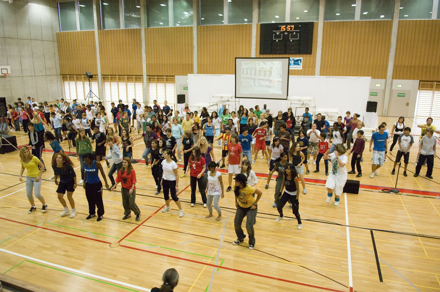 «Die Kinder und Jugendlichen sind mit vollem Eifer und grosser Begeisterung bei der Sache», freut sich Nkenda Nelson, Projektleiterin der Schule Im Birch. Während dreier Tage üben die rund 200 Mittel- und Oberstufenschüler für die grosse Abschlussshow, die am Freitagabend in der Sporthalle Im Birch über die Bühne gehen wird. Zu dieser öffentlichen Show werden über 500 Zuschauer erwartet. Die Young Americans, rund 40 angehende Show- und Musikprofis im Alter von 15 bis 22 Jahren aus den USA, führen während ihrer Tournee Workshops in Schulen durch und studieren mit den Schülerinnen und Schülern eine komplette Bühnenshow bis zur Aufführung ein. Das Programm der Young Americans ist eine hinreissend lebendige und bunte Revue, eine Mischung aus Gesang und Tanz, Stepdance, Ballett und Gospelmusic bis hin zu Jazz-, Rock-, Funk- und Soulnummern und deckt die gesamte Bandbreite von Musical bis zu Hip-Hop und Moderndance ab. «Das Programm kommt bei den Kindern und Jugendlichen extrem gut an», stellt Nkenda Nelson fest. «Alle können sich damit identifizieren.»