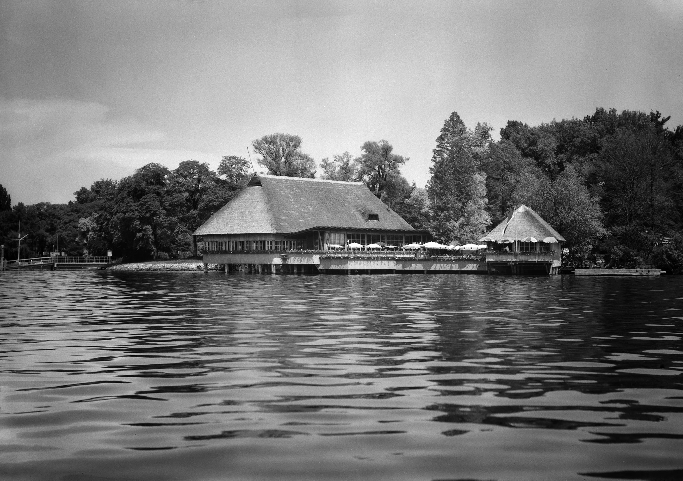 Fischerstube aus dem Jahr 1939 wieder auf. Damit ergibt sich die Chance, zusammen mit dem Erhalt der Fischerhütte und dem Ersatz des störenden Gartenbuffets das Ensemble wieder auf die Qualität und Eigenständigkeit der ursprünglichen Gesamtanlage von 1939 zurückzuführen. Von innen wie von aussen soll die neue Anlage ein mit allen Sinnen wahrnehmbares Erlebnis vermitteln. Mit der Gestaltung des Uferbereichs wird das Angebot an Aussensitzplätzen am See erweitert und damit dieser beliebte Bezug zum Wasser aus