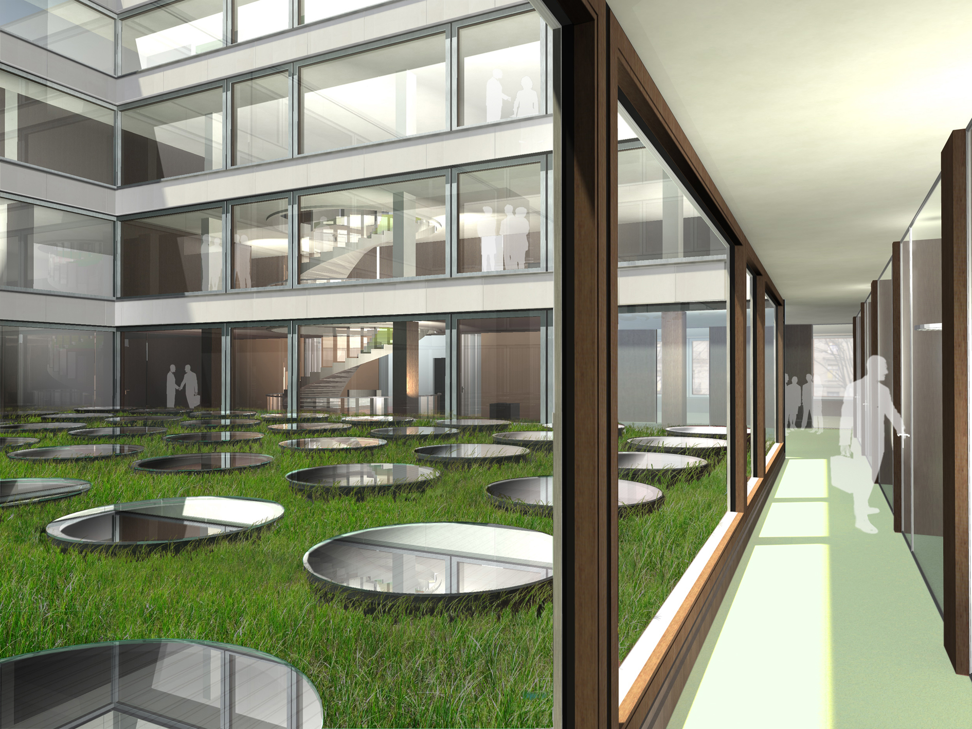 Mit dem Neu- und Umbau entwickelt sich der aus verschiedenen Zeiten stammende Hofrand weiter. Vorgesehen sind eine Sanierung der ZKB-Gebäudehülle, die Aufstockung der Decke über der Kundenhalle sowie die Gesamterneuerung der Lichthoffassade. Gleichzeitig soll ein Neubau für weitere Nutzungen entstehen. Die Anzahl der Parkplätze wird reduziert, das bestehende Verkehrsregime beibehalten. Die Höfe werden künftig besser zugänglich und durchlässiger. An geeigneter Lage sind zudem publikumsorientierte Nutzungen vorgesehen.