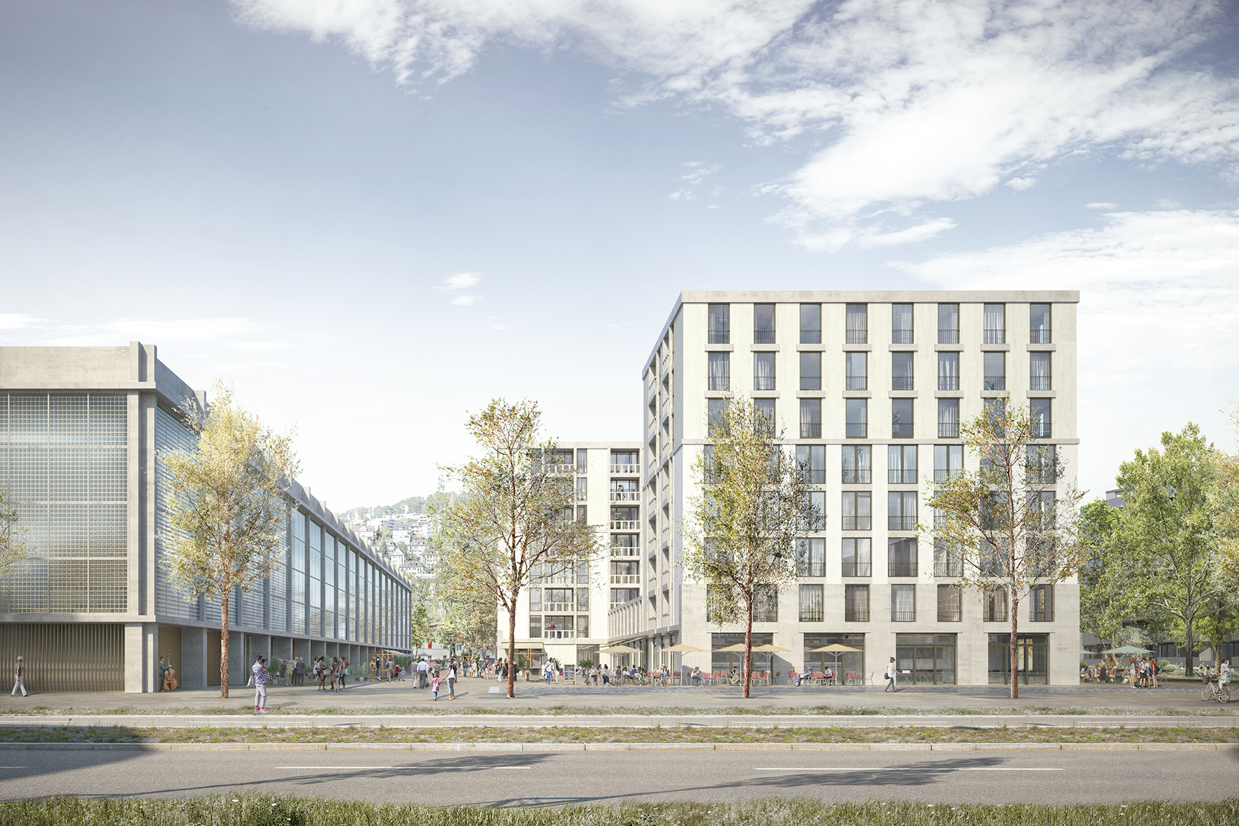 Das Investorenprojekt mit einer Hauptnutzfläche von rund 66 000 Quadratmetern sieht den Bau von zwei Wohn- und Geschäftstürmen im Westen des Areals vor und wird durch HRS Real Estate AG im Auftrag der Investorin Immobilienanlagegefässe der Credit Suisse entwickelt und realisiert. Der gemeinnützige Wohnungsbau wird in Kooperation mit der Allgemeinen Baugenossenschaft Zürich (ABZ) geplant und realisiert. Das Teilprojekt sieht im Osten des Areals einen Wohnkomplex mit 173 Genossenschaftswohnungen in unterschiedlichen Grössen sowie einem Doppelkindergarten mit Betreuungsräumen vor. Architekten der drei Objekte sind Pool Architekten, Caruso St John Architects und Boltshauser Architekten. Die offene Bebauungsstruktur ermöglicht genügend Freiräume fürs Quartier. Stadtrat André Odermatt, Vorsteher des Hochbaudepartements, unterstrich die Bedeutung des Gesamtprojekts fürs Quartier: «Die verschiedenen Wohnformen sind eine Bereicherung für Zürich-West. Aufgrund der verschiedenen Nutzungen der Gebäude wird das Areal nicht nur an den Spieltagen, sondern jeden Tag belebt sein.»