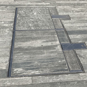 - Rahmen und Deckelteile Chromstahl, Deckel mit Belagsmaterial befüllbar