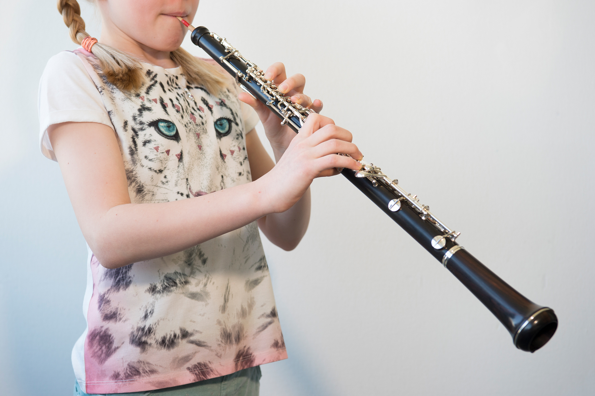 Junge Schüler*innen können mit der kleineren «Junior Oboe» einsteigen. Die grössere und tiefer klingende Alt-Oboe, auch Englischhorn genannt, kann nach einigen Jahren Unterricht ergänzend zur Oboe gespielt werden.