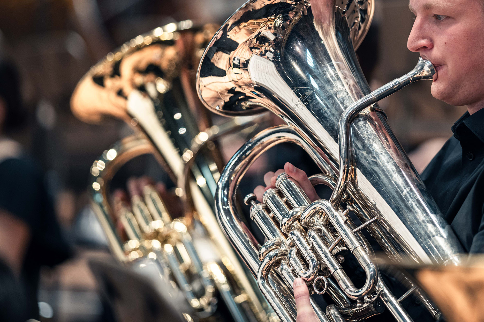 Die Tuba ist ein grosses Blechblasinstrument aus Messing. Wegen ihres Gewichts wird sie meist sitzend gespielt. Als Bassinstrument legt sie mit ihrem tiefen, warmen und vollen Klang oft das Fundament in der Musik.