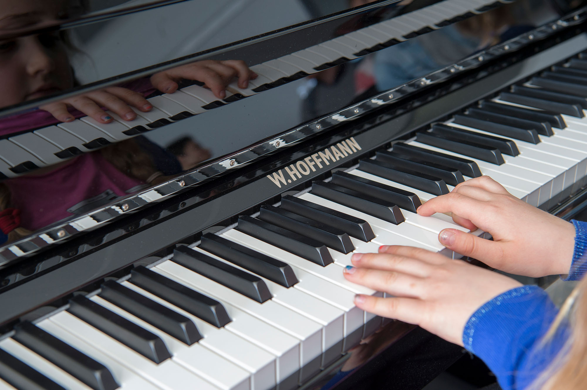 Das Klavier ist das wohl bekannteste Tasteninstrument. Durch das Anschlagen der 88 Tasten werden Hämmer betätigt. Diese bringen die Saiten im Inneren des Klaviers zum Klingen. Auf dem Klavier kann man schon nach wenigen Unterrichtsstunden ansprechend musizieren.