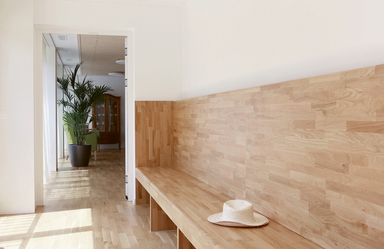 Die Wohnbereiche bestechen durch ihre lichtdurchfluteten und zeitgemäss gestalteten Räumlichkeiten, die eine warme und einladende Atmosphäre schaffen. Der sorgfältig gestaltete Aussenbereich mit gedeckter Pergola, Hochbeeten und einem Rundweg lädt zum Verweilen ein.