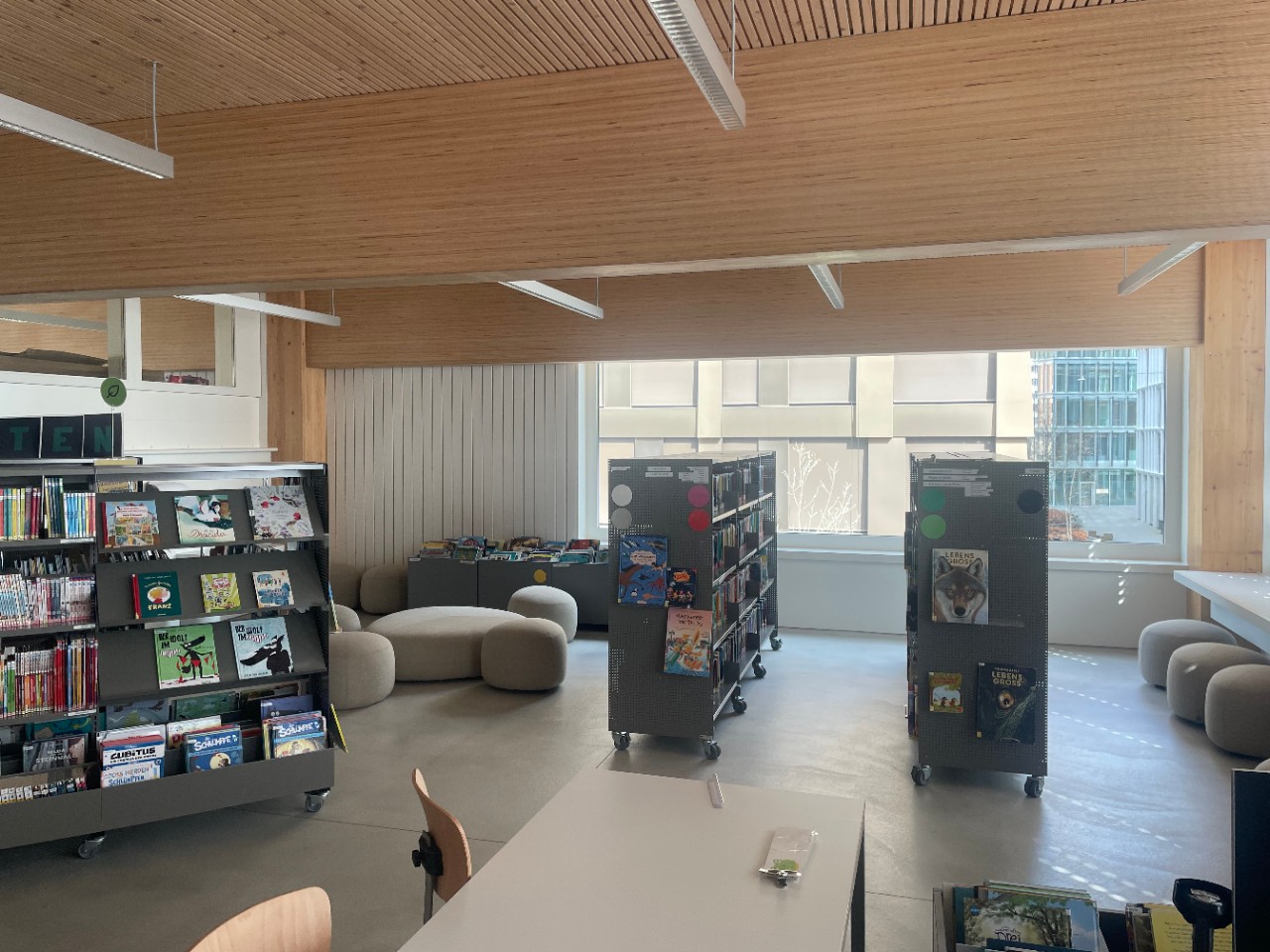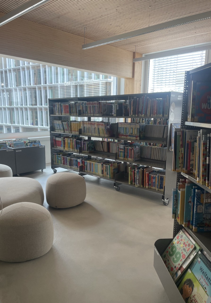 Die Bibliothek der Schule Allmend bietet den Schülerinnen und Schülern unzählige Bücher aus verschiedenen Genres, die zum Entdecken und Staunen einladen. Ob Abenteuer, Sachbücher oder Fantasiegeschichten – hier ist für jeden etwas dabei. Mit bequemen Polstergruppen ist die Bibliothek der ideale Ort, um in neue Welten unterzutauchen und die Freude am Lesen zu entdecken. Die Klassen besuchen die Bibliothek regelmässig während den Unterrichtszeiten. Die Schüler:innen haben auch die Gelegenheit während der Betreuungszeit die Bibliothek zu besuchen. Die Medienwünsche der Kinder werden entgegenkommen, sodass der Bestand der Bibliothek immer weiter wächst und stets für die Schüler:innen aktuell bleibt.