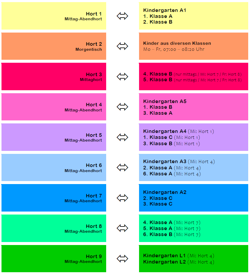 Die Betreuungsteams unserer neun Horte arbeiten mit folgenden Klassen zusammen.