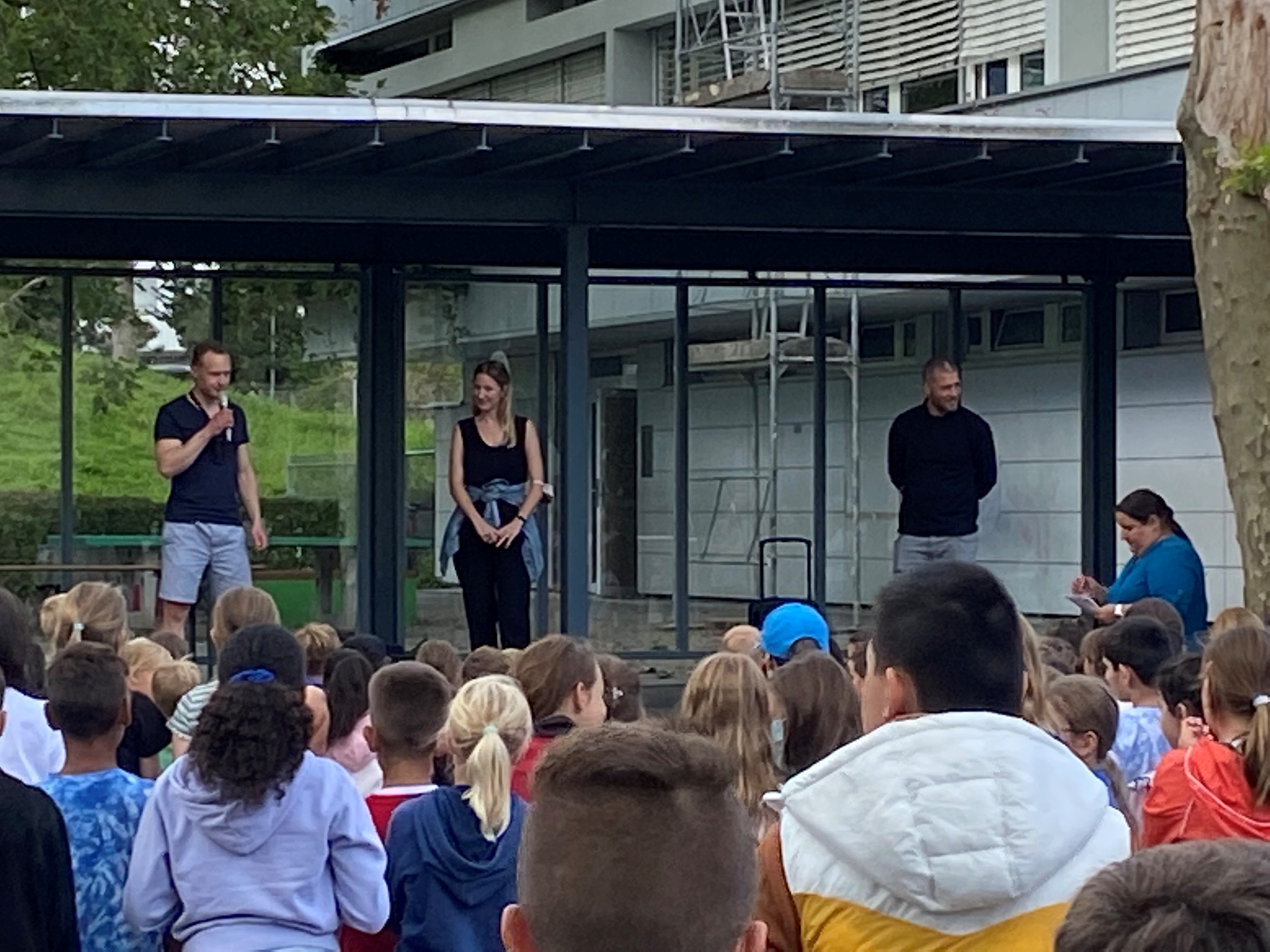Mit Liedern, dem Altweg-Rap und Abschiedsworten wurden die 6. Klässler/innen und die 3. Klässler/innen, welche die Schule wechseln, von allen Schüler/innen und Mitarbeitenden der Schule feierlich verabschiedet.