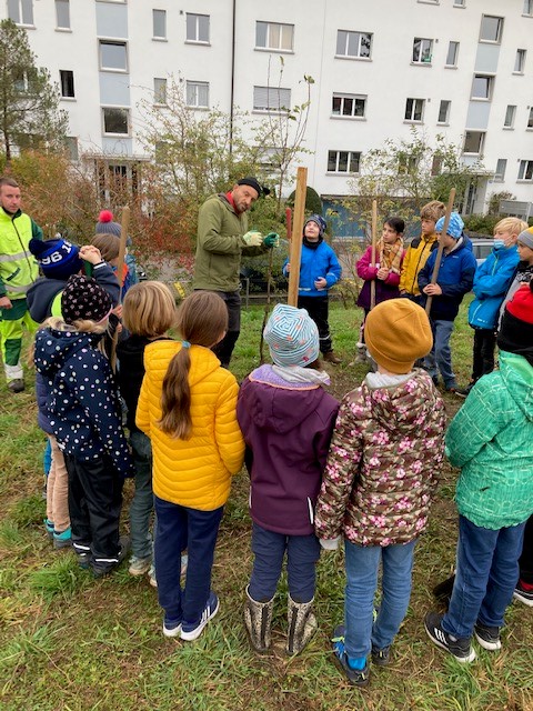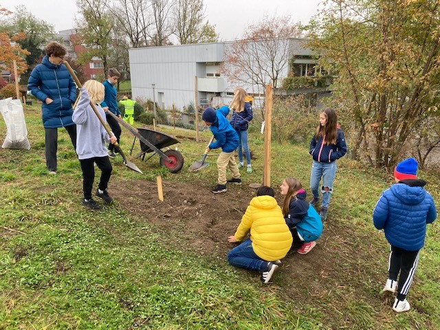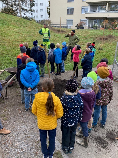 Die Schule Altweg setzt vermehrt den Fokus auf Bildung für nachhaltige Entwicklung und auf eine optimierte Biodiversität. In diesem Zusammenhang pflanzten die Kinder in Zusammenarbeit mit der GrünStadt Zürich 15 junge Obstbäume (Apfel. Zwetschge, Birne) auf unserem grossräumigen Schulareal. Alle Klassen kümmern sich nun um das Wohl und die gute Entwicklung der Bäume.