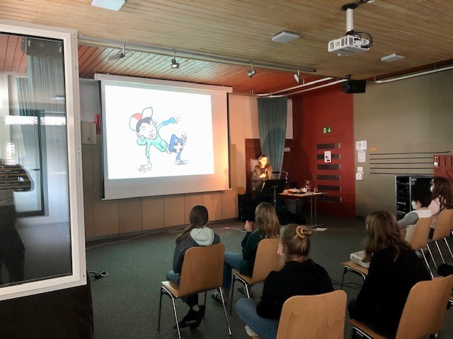 Verschiedene Kinderbuchautoren besuchten unsere Schule, lasen den Schüler/innen auf allen Schulstufen unterschiedliche Geschichten und Bücher vor und erzählten von ihrem Beruf als Schriftsteller/in.
