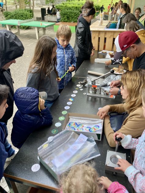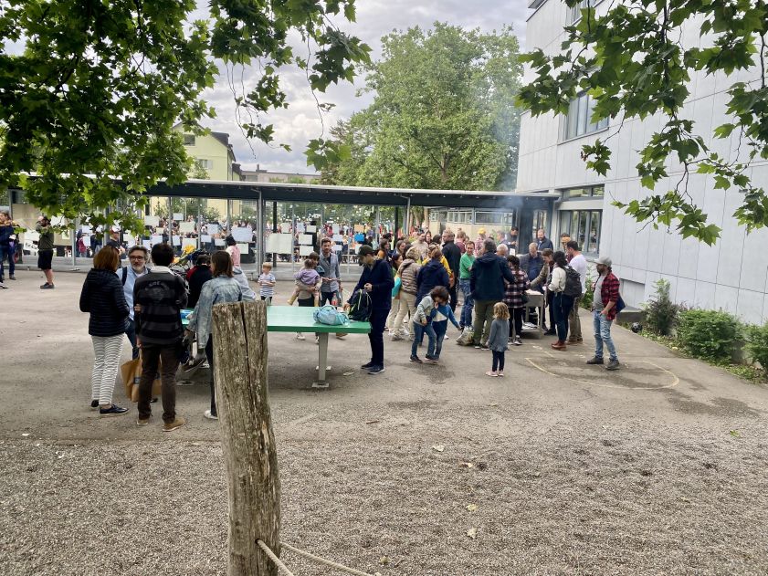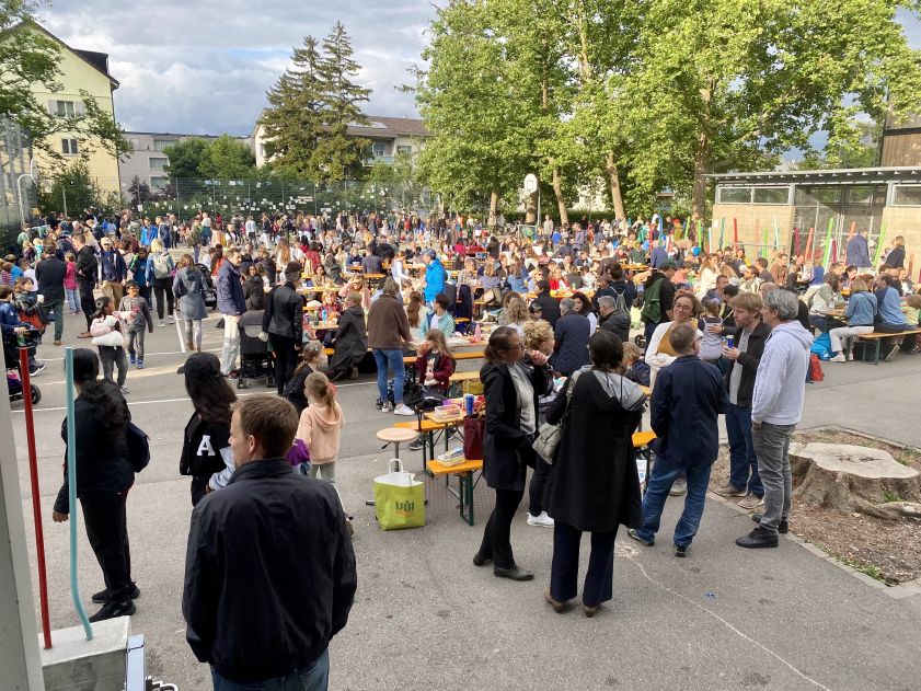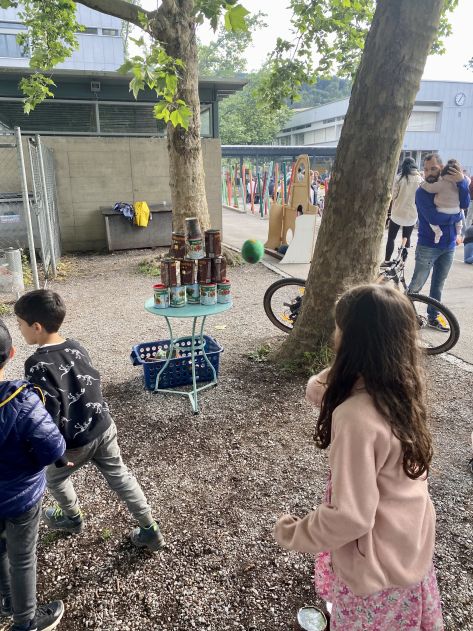 Kinder-Flohmi, Torwandschiessen, Büchsenwerfen, Schokokuss-Schleuder, gemeinsames Grillieren, Button-Machine, Kuchen- und TTG-Produkteverkauf für einen guten Zweck, eine Fotowand für Erinnerungsfotos, eine Schminkbar und musikalische Beiträge der Schülerinnen und Schüler umrahmten die tolle Feststimmung mit allen Kindern, Familien und dem ganzen Schulteam.