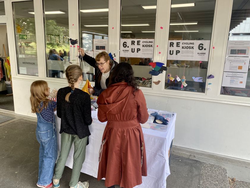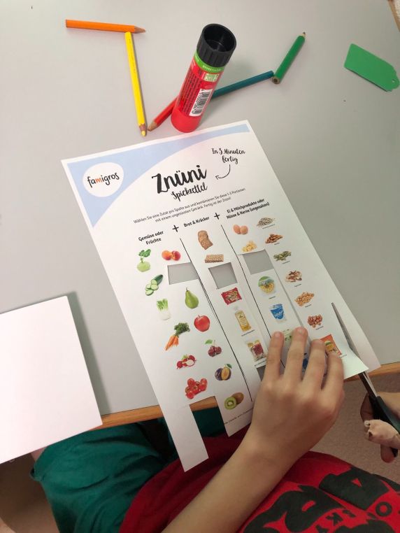 Mit einem gesunden Znüni organisieren alle Mittelstufenklassen einmal im Schuljahr einen Pausenkiosk für die ganze Schule. Wie auf den Fotos zu sehen ist, war das Angebot sehr beliebt.