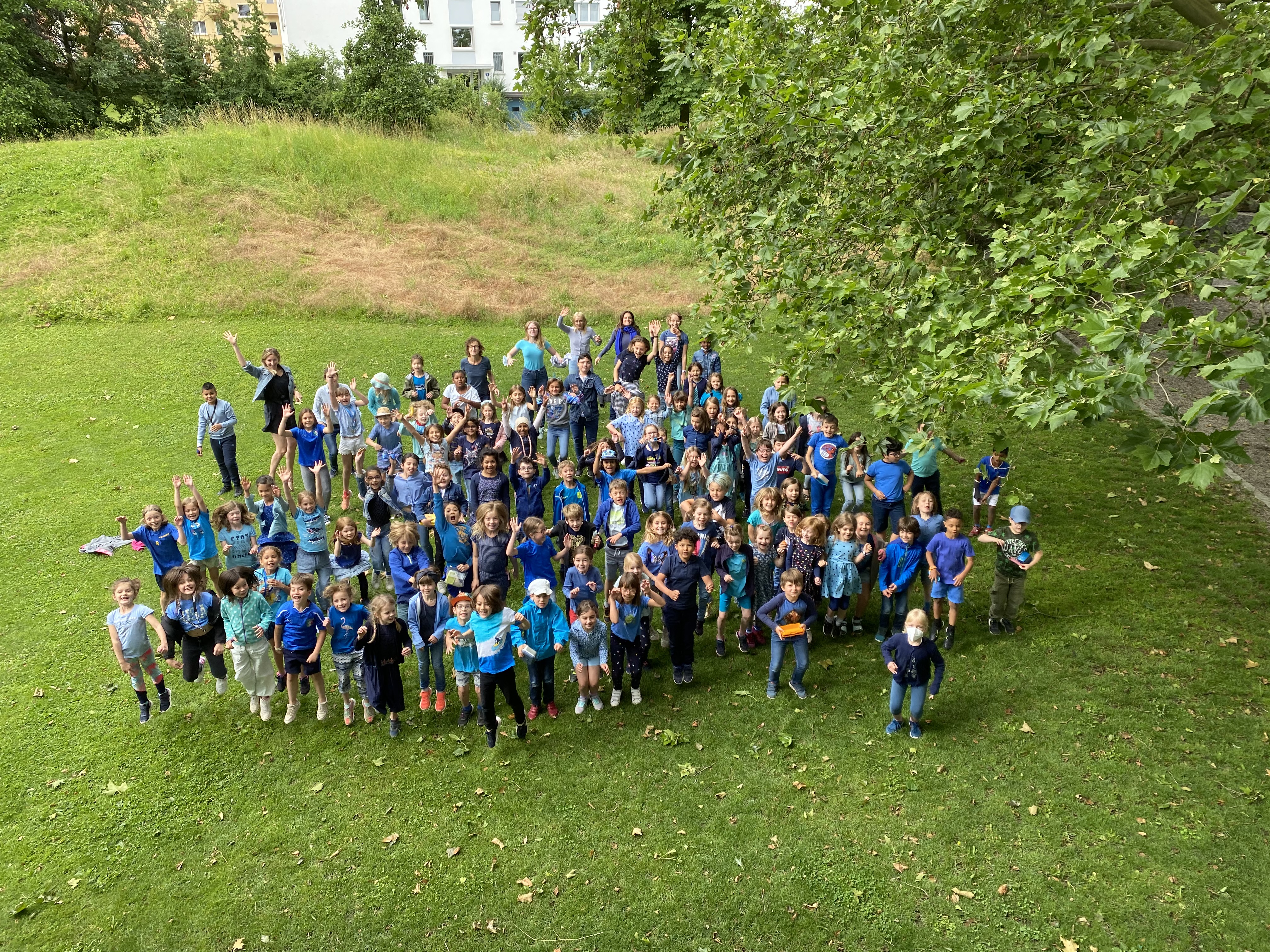 Jeden Tag wechselte die «Tagesfarbe». Die Kinder sowie die Lehr- und Betreuungspersonen kamen der Farbe entsprechend gekleidet zur Schule. In der grossen Pause wurde jeweils ein Gruppenfoto gemacht.