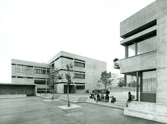 «Umgeben von Wohnsiedlungen der 1950er-Jahre verbindet sich die Schulanlage mit den öffentlichen Frei- und Erholungsräumen zu einem weitläufigen Grünzug. Geschickt ineinander gestaffelte, halbgeschossig versetzte Kuben bilden den Schultrakt. Fachzimmer, Turnhalle und Schwimmbad sind in einem weiteren Baukörper zusammengefasst. Stilistisch lässt sich der Sichtbetonbau ansatzweise der brutalistischen Architekturrichtung zuordnen. Die Anlage ist charakterisiert durch eine konsequente und sparsame Farbwahl. Allerdings wurde das ursprüngliche Erscheinungsbild 1996 durch eine Fassadenisolation stark verändert.»