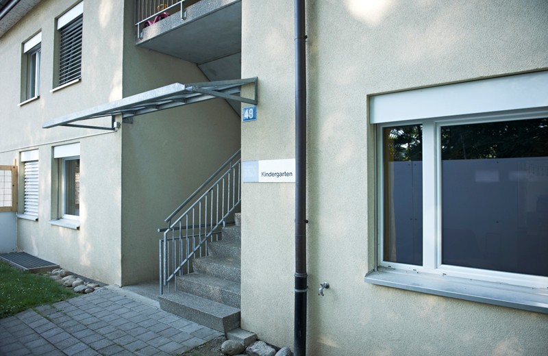 Der Kindergarten liegt in der Nähe der Schulhäuser Auzelg 1 und 2 in einem ruhigen Wohnquartier.