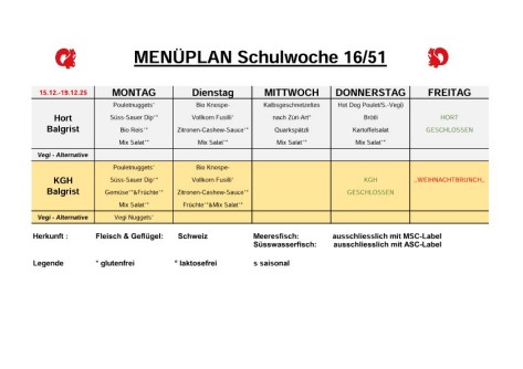 Das Mittagessen wird auf die Einhaltung der Ernährungsrichtlinien und der Hygienevorschriften der Stadt Zürich geachtet. Bei der Menüplanung werden die Bedürfnisse der Kinder (Allergien, Besonderheiten) berücksichtigt.