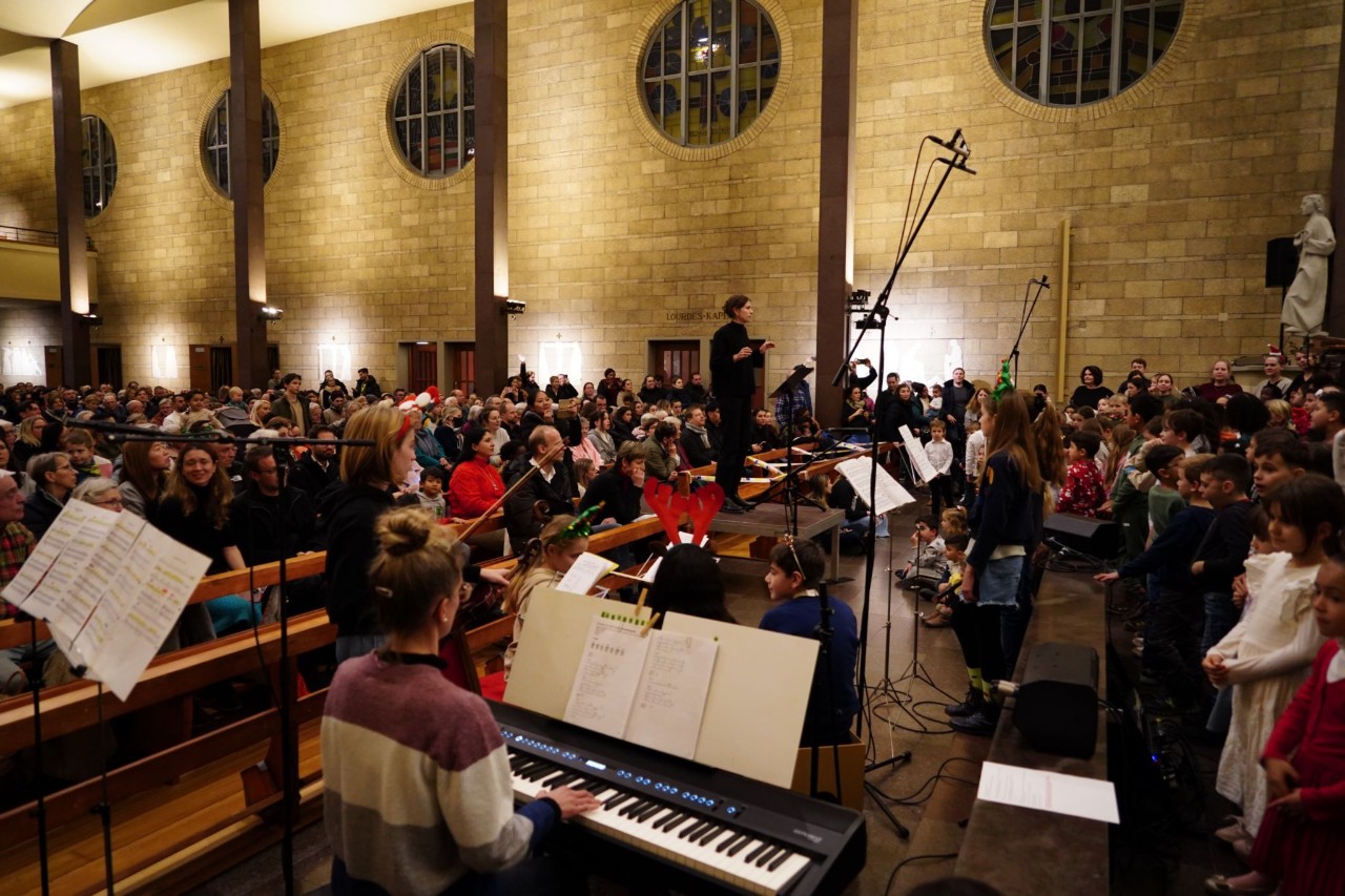 Im Dezember wird es weihnachtlich im Schulhaus Buhn. In Zusammenarbeit mit dem Quartierverein Seebach und der katholischen Kirche Maria Lourdes findet unser Weihnachtssingen statt. Die Proben in den teilnehmenden Klassen starten dafür bereits im November. Am Morgen des Adventssingens versammeln sich die Kinder dann in der Eingangshalle des Schulhauses Buhn zum gemeinsamen Singen. Am Abend treten wir in der Kirche Maria Lourdes vor Publikum auf und verbreiten unsere weihnachtlichen Klänge. Der Quartierverein Seebach und die Kirchengemeinde unterstützen die singenden Kinder mit einer kleinen Stärkung. Wir freuen uns besonders, dass bei diesem Anlass jedes Mal Kinder aller Religionen mitmachen.