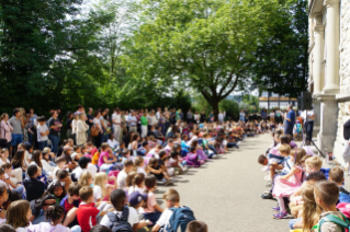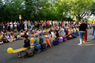 Der erste Schultag eines Schulkindes markiert einen bedeutenden Schritt im Leben eines Kindes. Die Schule Buhn trägt diesem besonderen Tag Rechnung und feiert gemeinsam mit den neuen 1. Klässlerinnen und 1. Klässlern. Am Ende des ersten Schulmorgens versammelt sich die Schülerschaft der Primarstufe vor den Toren des Hauptgebäudes. Nach der Begrüssung durch die Schulleitung und dem 1. Klasslied gehen alle neuen Schülerinnen und Schüler, sowie die neu eingestellten Lehrpersonen durch einen langen Gang aus Kindern und werden unter tosendem Applaus in der Schule willkommen geheissen.