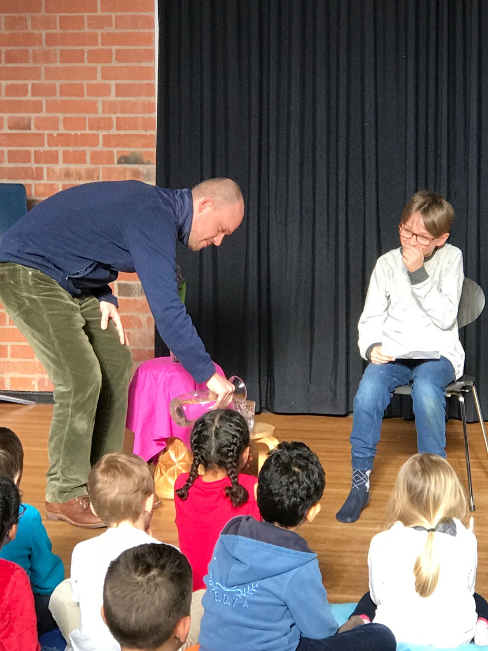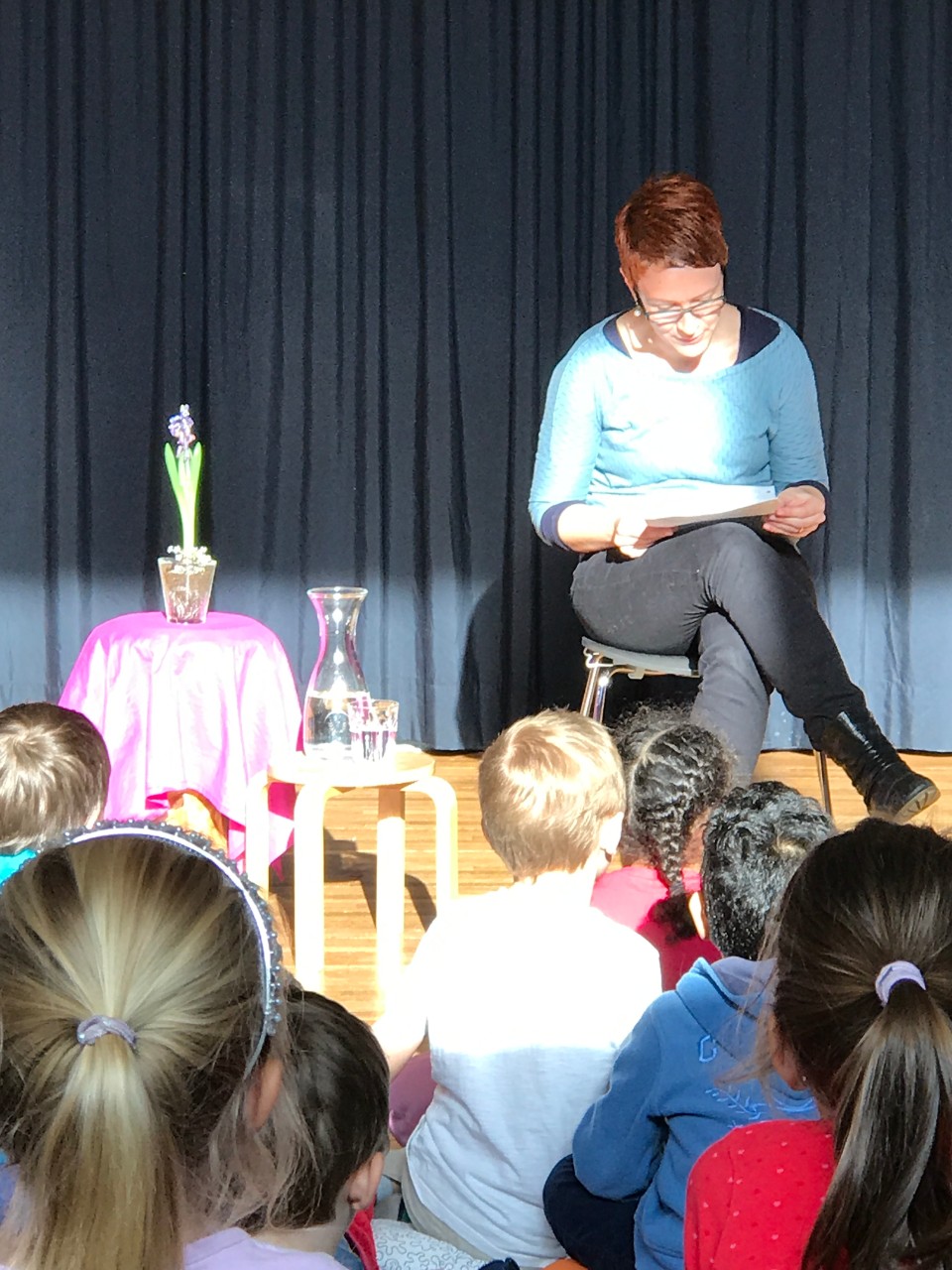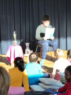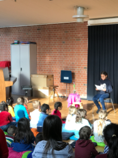 Schon am ersten Nachmittag füllte sich der Singsaal schnell mit neugierigen Kindern und Erwachsenen, welche gespannt den zwei vorgetragenen Geschichten lauschten. Und erfreulicherweise ging es so weiter: An jedem Nachmittag war der Saal gut gefüllt, einige Kinder kamen mehrmals vorbei und auch mindestens ein Hort war jedes Mal da. Das Programm war sehr abwechslungsreich: Es wurde vorgelesen, vorgespielt, gesungen, getanzt und mitgespielt.