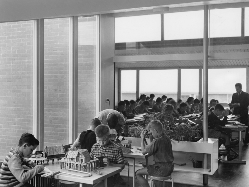 Nach dem zweiten Weltkrieg wurde der Schulbau zu einer der wichtigsten öffentlichen Bauaufgaben. Die architektonischen Konzepte waren damals stark geprägt von pädagogischen Überlegungen. Man richtete sie auf die Bedürfnisse der Kinder aus und setzte dem monumentalen Schulbau der Jahrhundertwende den eingeschossigen, naturnahen und hellen Pavillon entgegen. Neu an der damaligen Auseinandersetzung mit dem Schulbau war, dass nebst Architekten auch Pädagogen und Schulärzte zu Wort kamen.