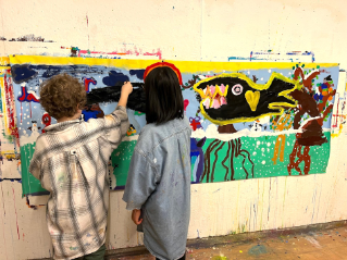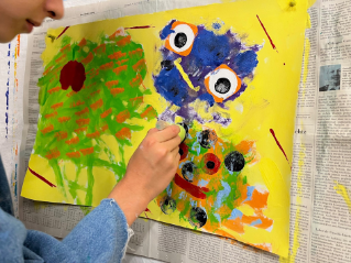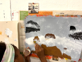 Das Malatelier ist eines unserer Förderangebote – hier tauchen die interessierten Kinder in kleinen Gruppen ein in die Malerei, lassen sich über ihre Sinne inspirieren und entwickeln ihre eigenen Techniken und Bildkonzepte.