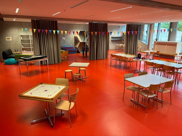 Der Mittagsclub Falletsche 3 befindet sich im Untergeschoss des Schulhauses Falletsche, die Verpflegung befindet sich in der Mensa der reformierten Kirche Leimbach (Wegackerstrasse 42)