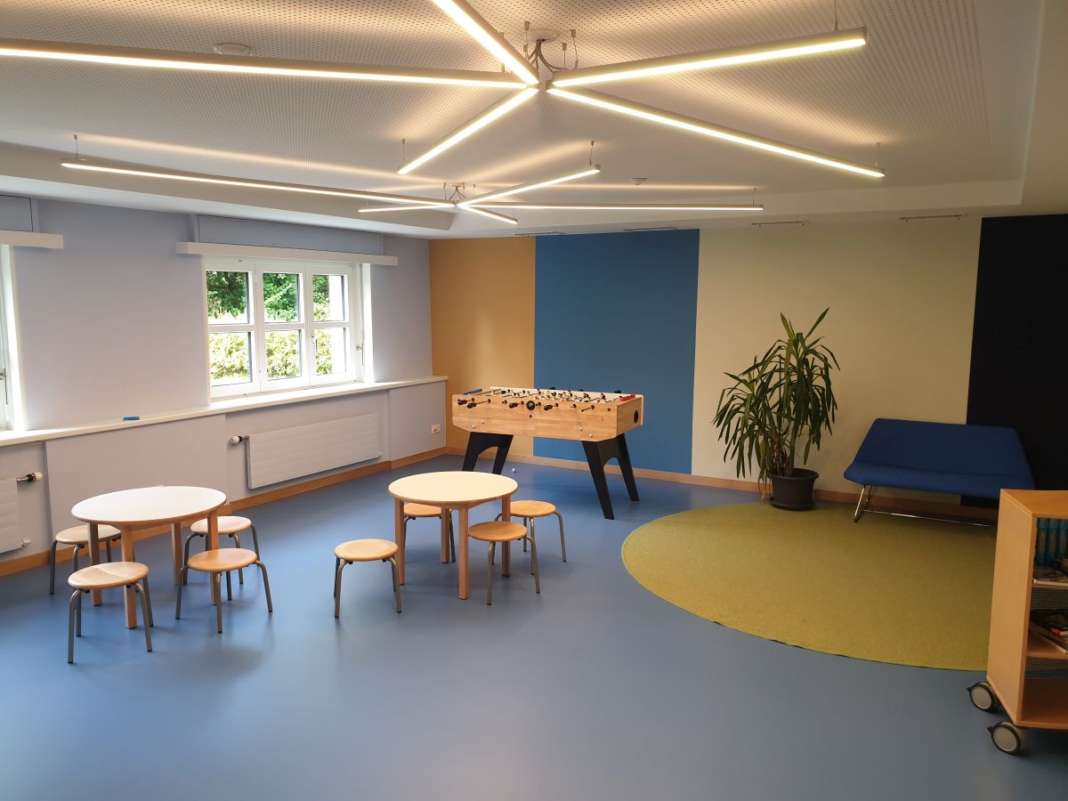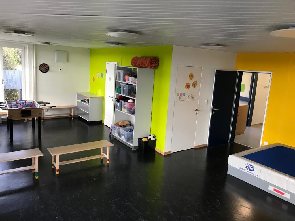 Während der Mittagszeit und nach Schulschluss am Nachmittag nehmen hier die Kinder aus den Horten Schweighof 1, Kleinalbis, Friesenberg und Frauentalweg das Mittagessen und das Zvieri ein. In den Aufenthaltsräumen werden nach dem Zvieri noch die Hausaufgaben erledigt, bevor sie für das Spielen, Basteln, Malen in ihre zugeteilten Betreuungen gehen.