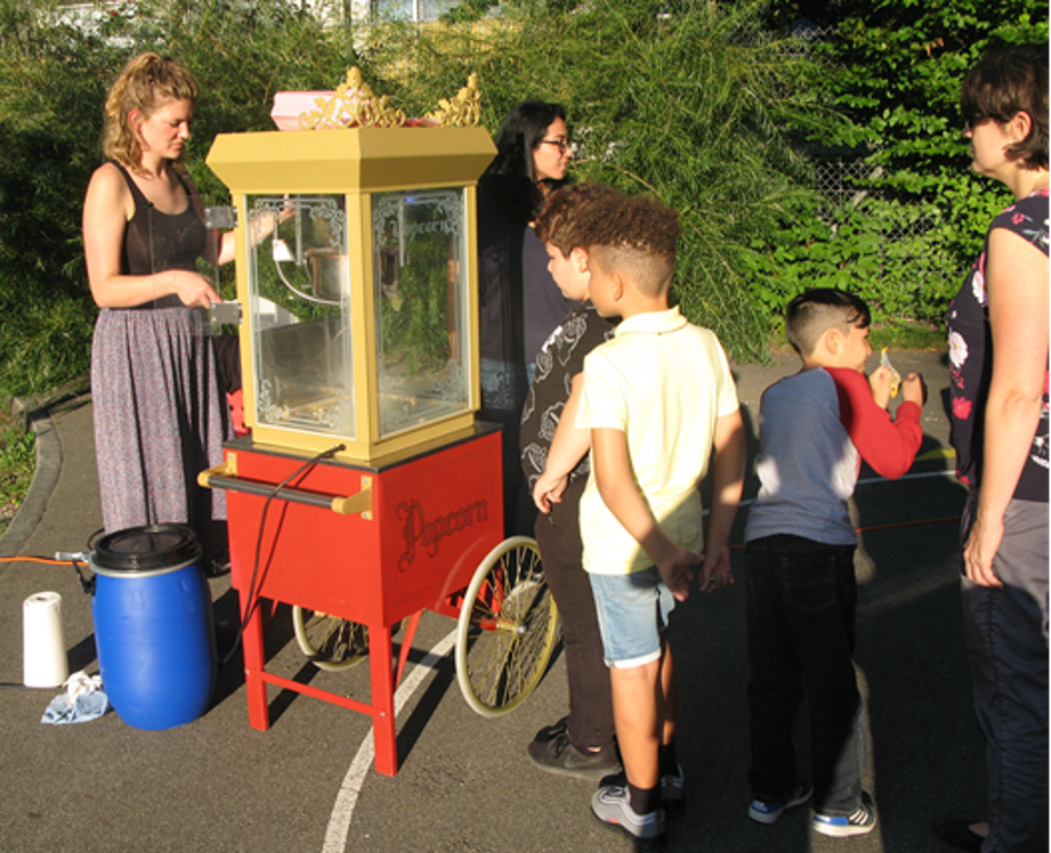 Es gab eine Zuckerwattemaschine und eine Popcornmaschine.