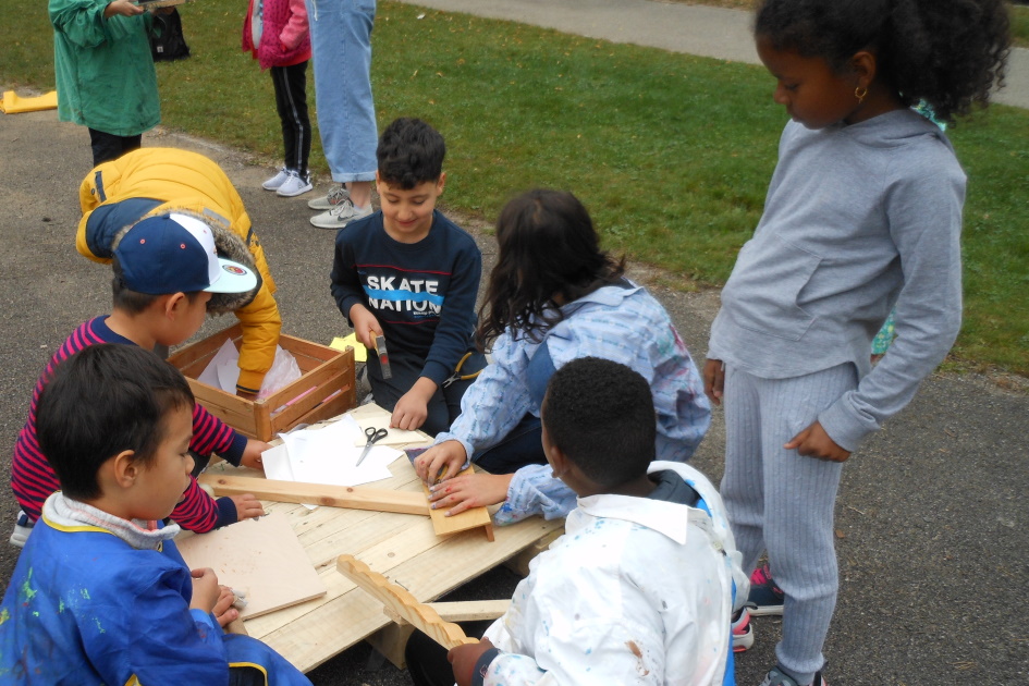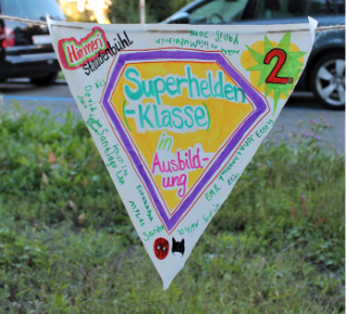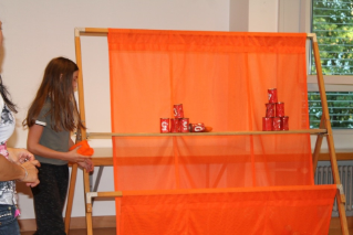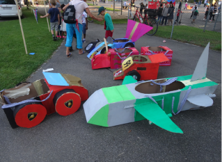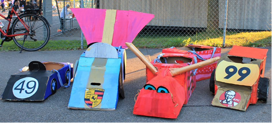 Wir hatten ein cooles Fest. Die 5. Klasse hatte aus Kartons Fahrzeuge gebastelt. Die 6. Klasse hatte einen Büchsenstand gebaut.